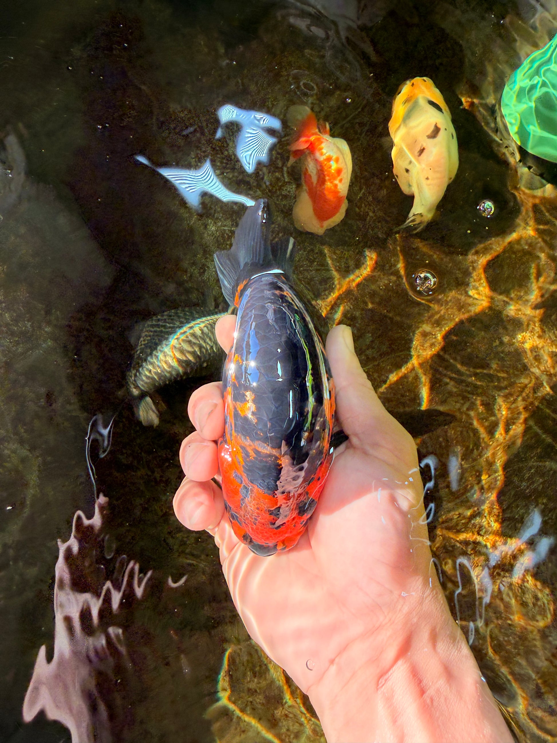 Vibrant, strong, and proud! This Tiger Ranchu’s bold markings and compact build make him an instant eye-catcher.