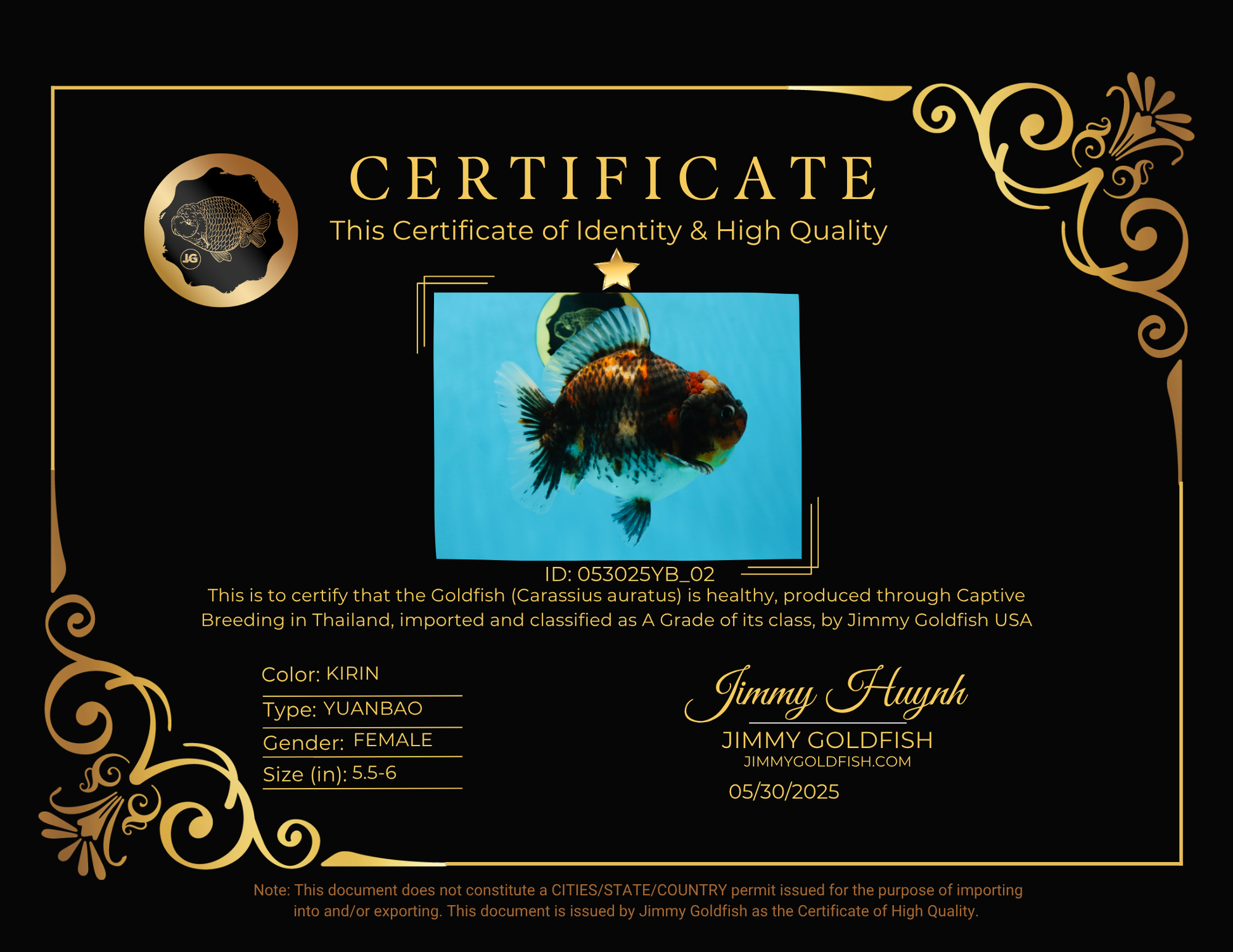 Elegant meets extraordinary! Her rich kirin patterns and impressive form deliver a captivating beauty ideal for goldfish connoisseurs seeking distinctive flair.