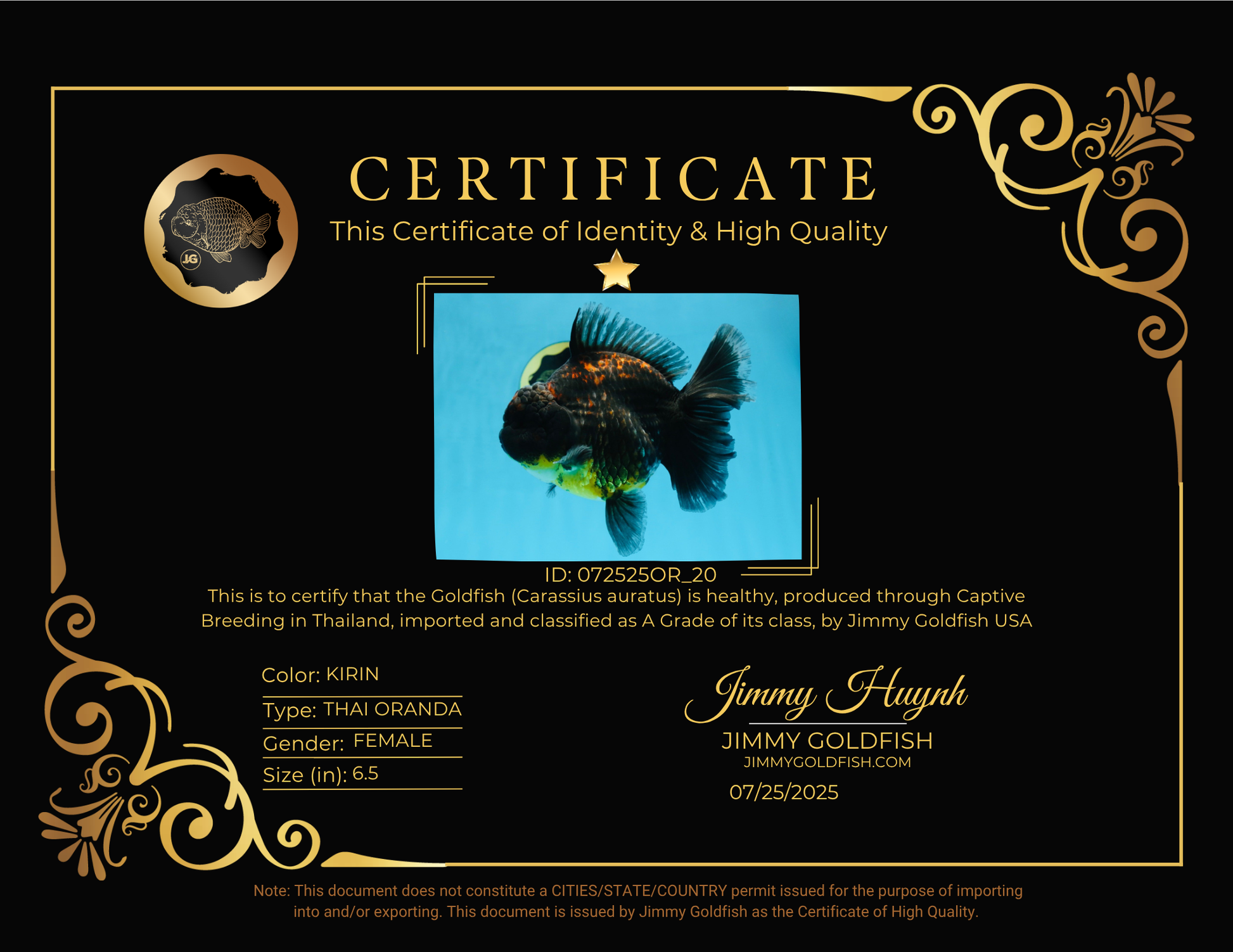 A Grade CHONKY Kirin Oranda Female 6.5 inches #072525OR_20