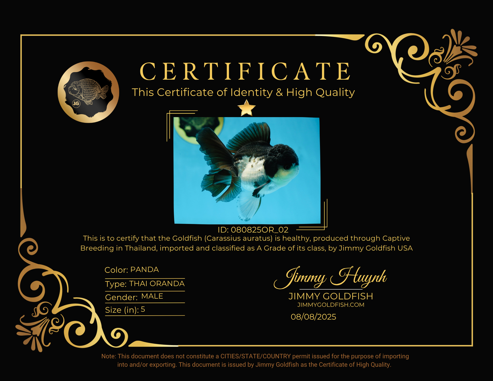 A Grade Panda Button Eyes Oranda Male 5 inches #080825OR_02