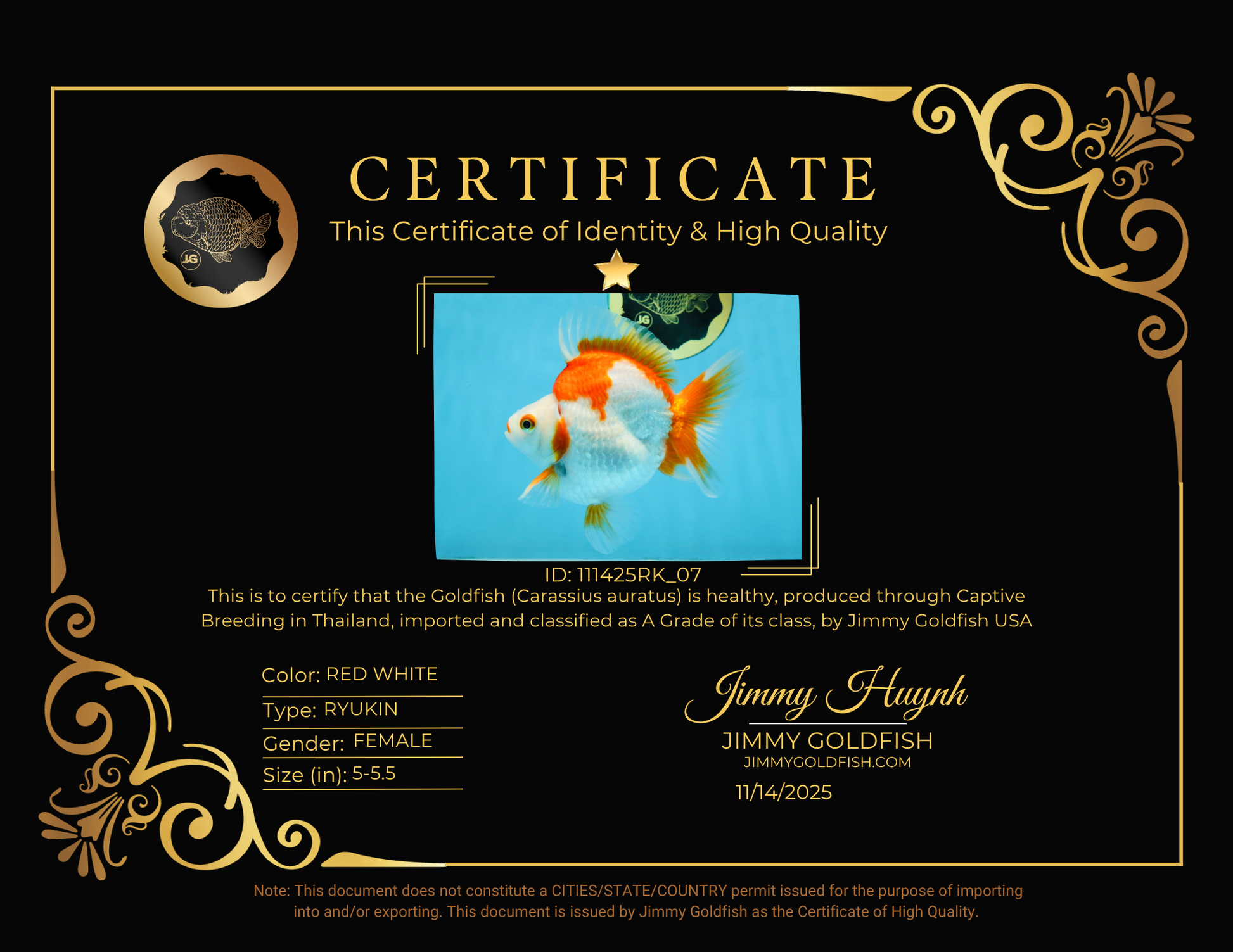 A Grade Red White Ryukin Female 5-5.5 inches #111425RK_07