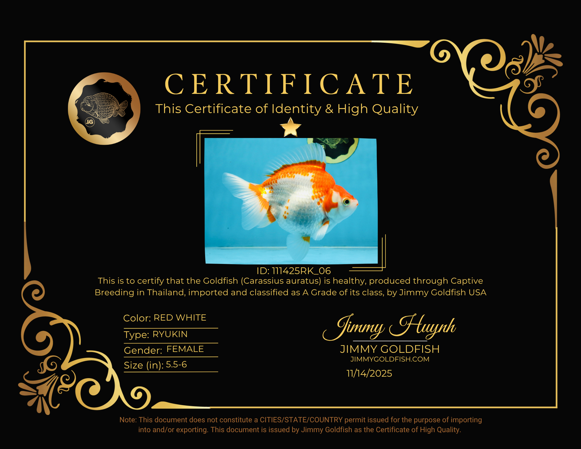 A Grade Red White Ryukin Female 5.5-6 inches #111425RK_06