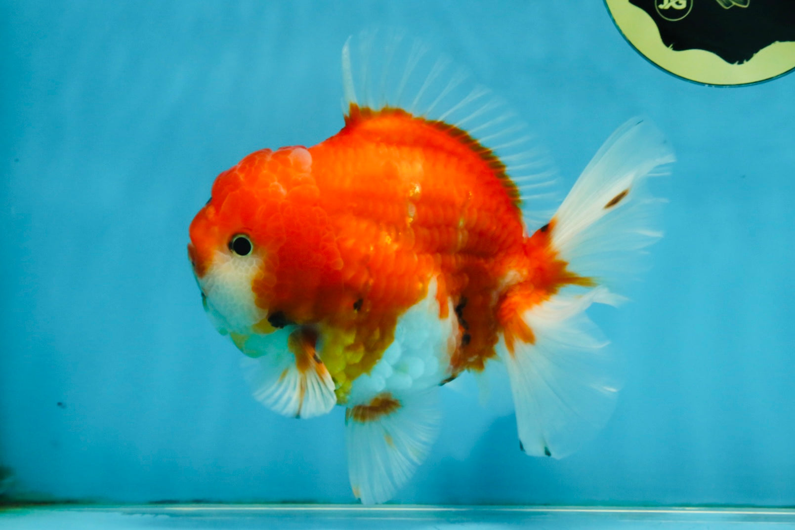 Soft red-white hues, strong body, and calm motion — this Sakura Oranda glows with gentle beauty. A premium A-grade gem for your tank.