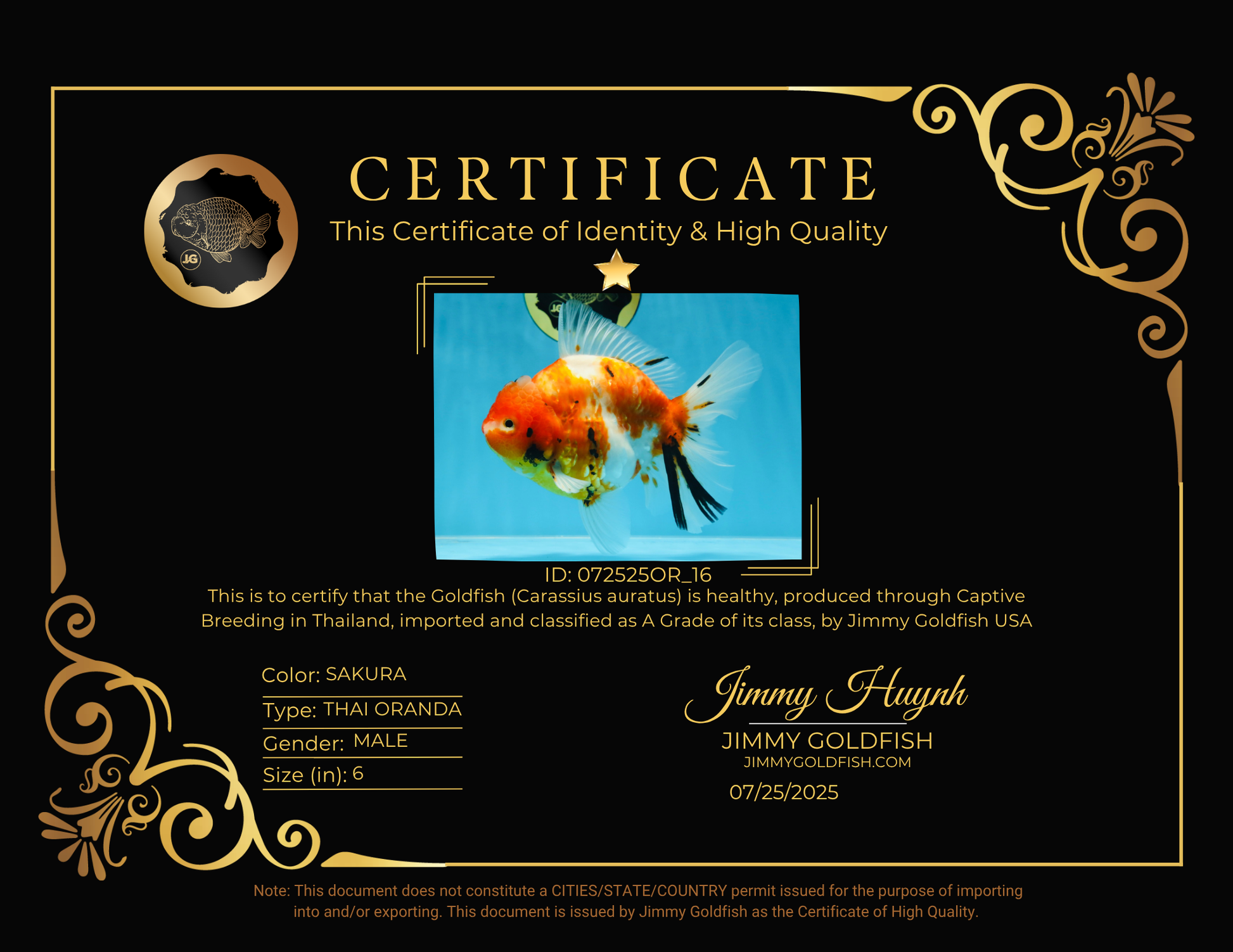 A Grade FANCY Sakura Oranda Male 6 inches #072525OR_16
