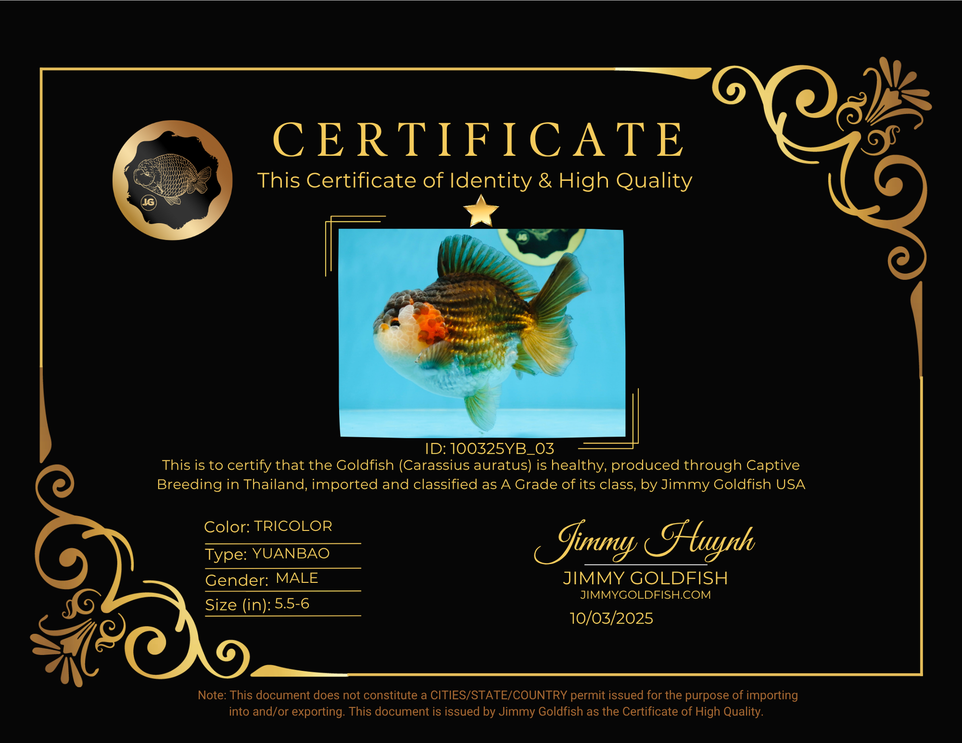 Compact Yuanbao body, lively tricolor blend, and a friendly character. Fish keepers will love his premium quality.