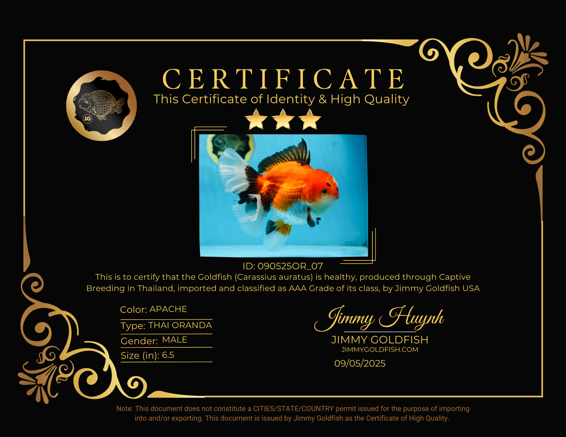 AAA Grade THICK BODY Godzilla Apache Oranda Male 6.5 inches #090525OR_07