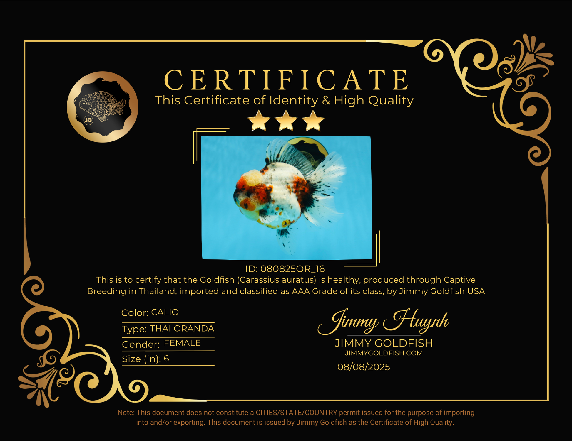 AAA Grade SUPER WEN Godzilla Calico Oranda Female 6 inches #080825OR_16