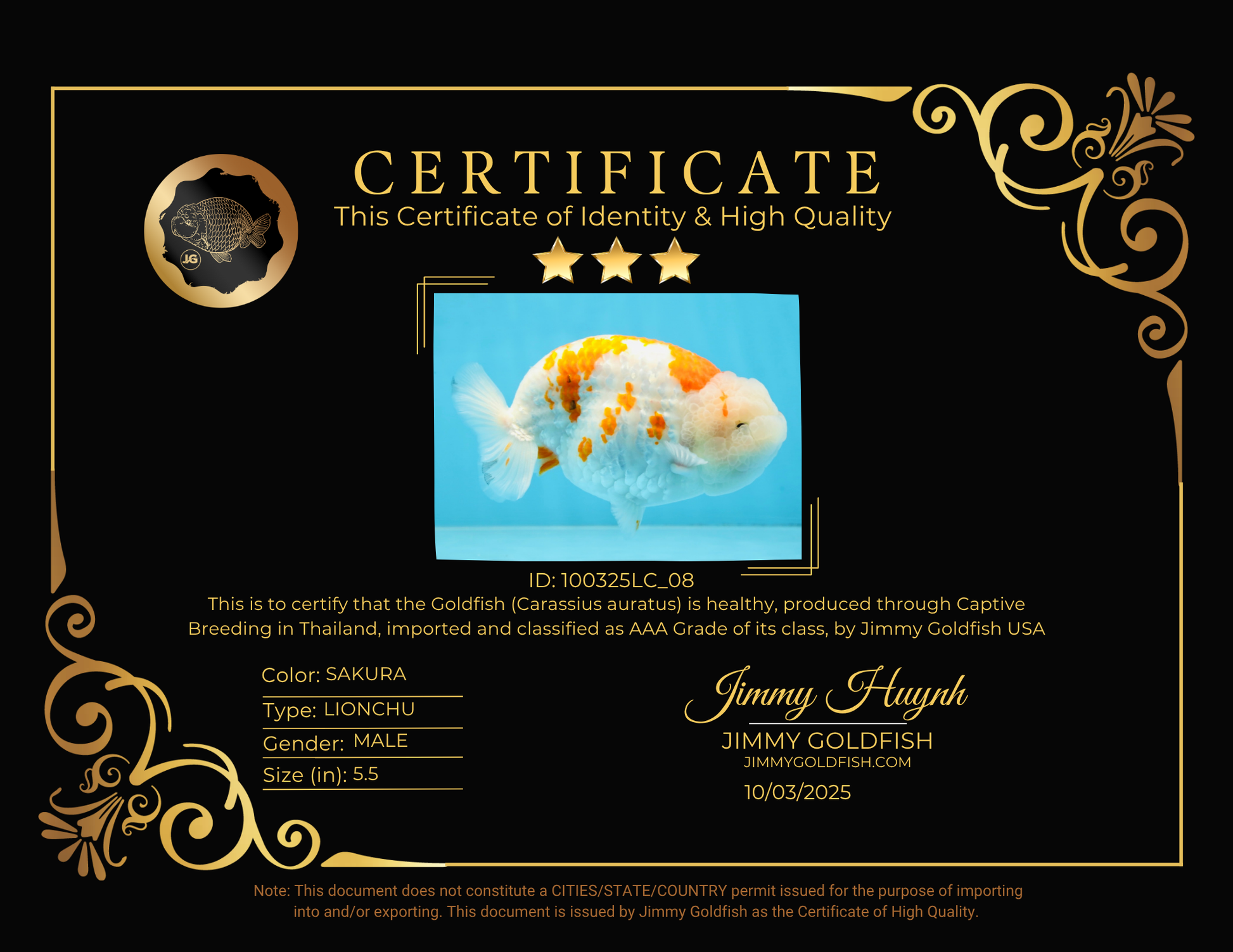 Bright orange and white markings define this Sakura LionKing. AAA grade means premium wen growth and balance. A true gem. #JimmyStyle