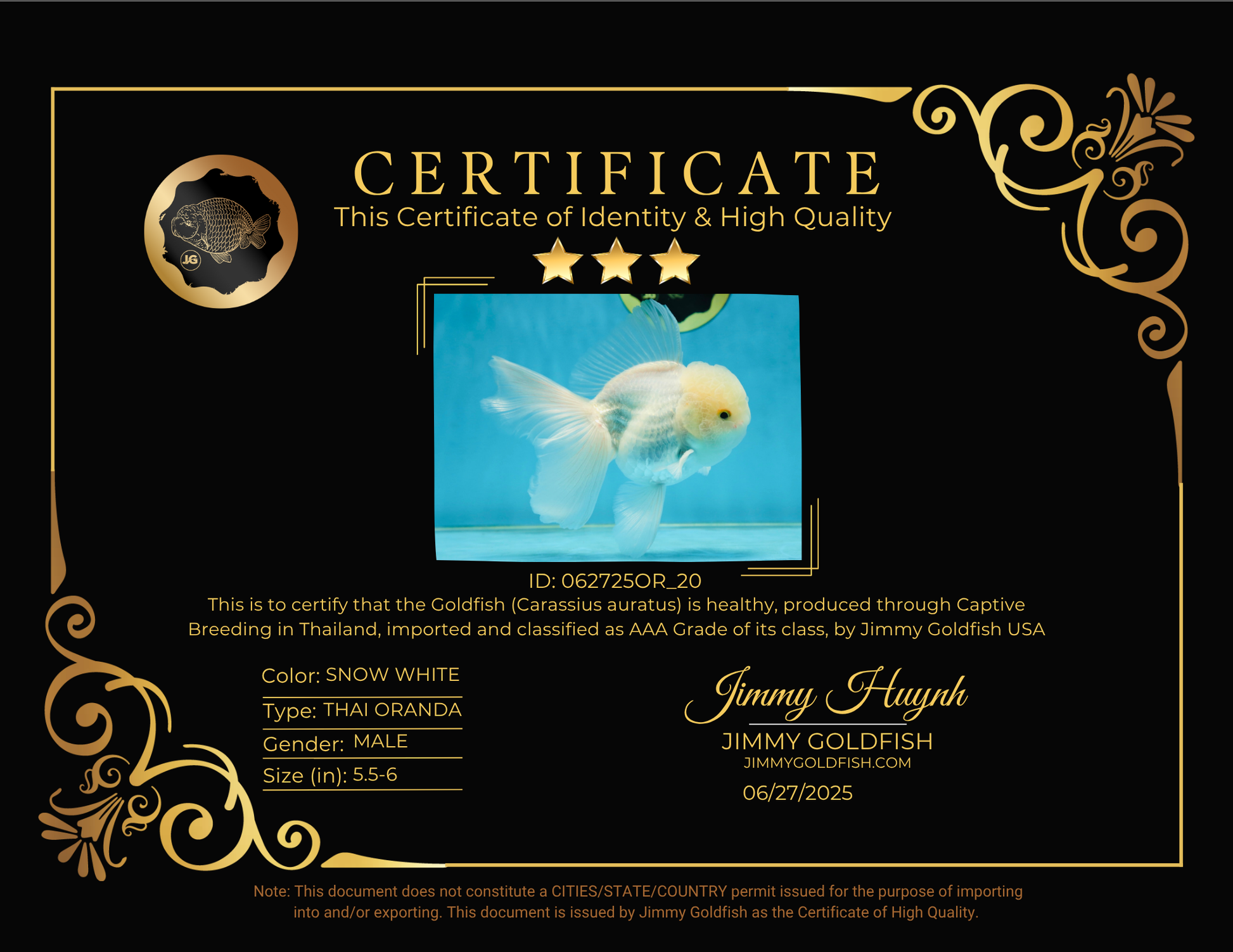 AAA Grade Snow White Oranda Male 5.5-6 inches #062725OR_20