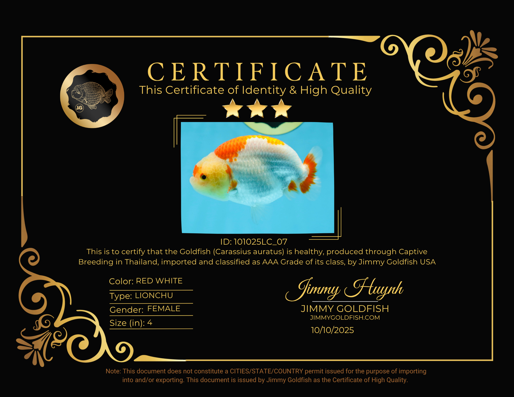 AAA Grade Young Red White Kohaku LionQueen 4 inches #101025LC_07