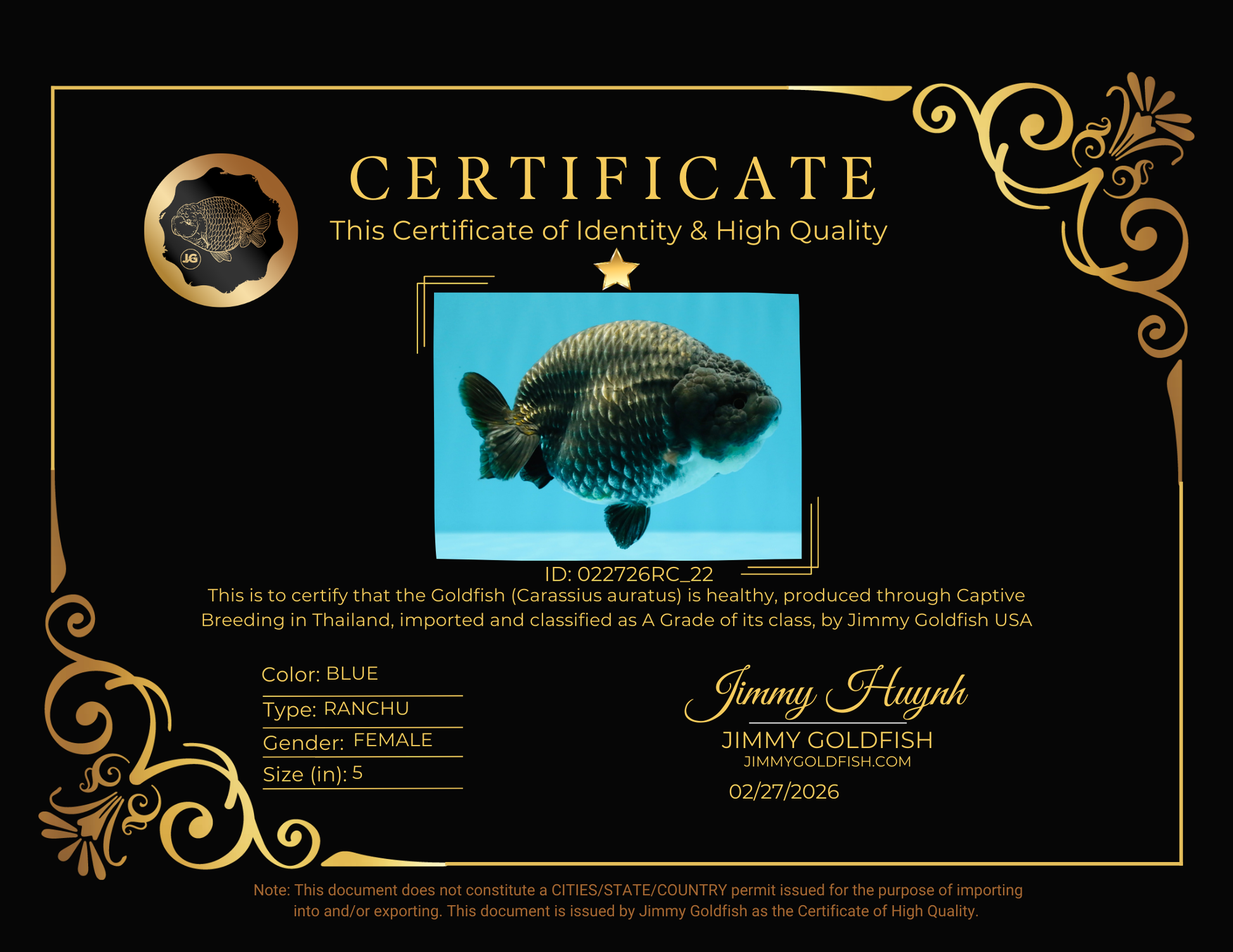 A Grade Blue Chinese Ranchu Female 5 inches #022726RC_22