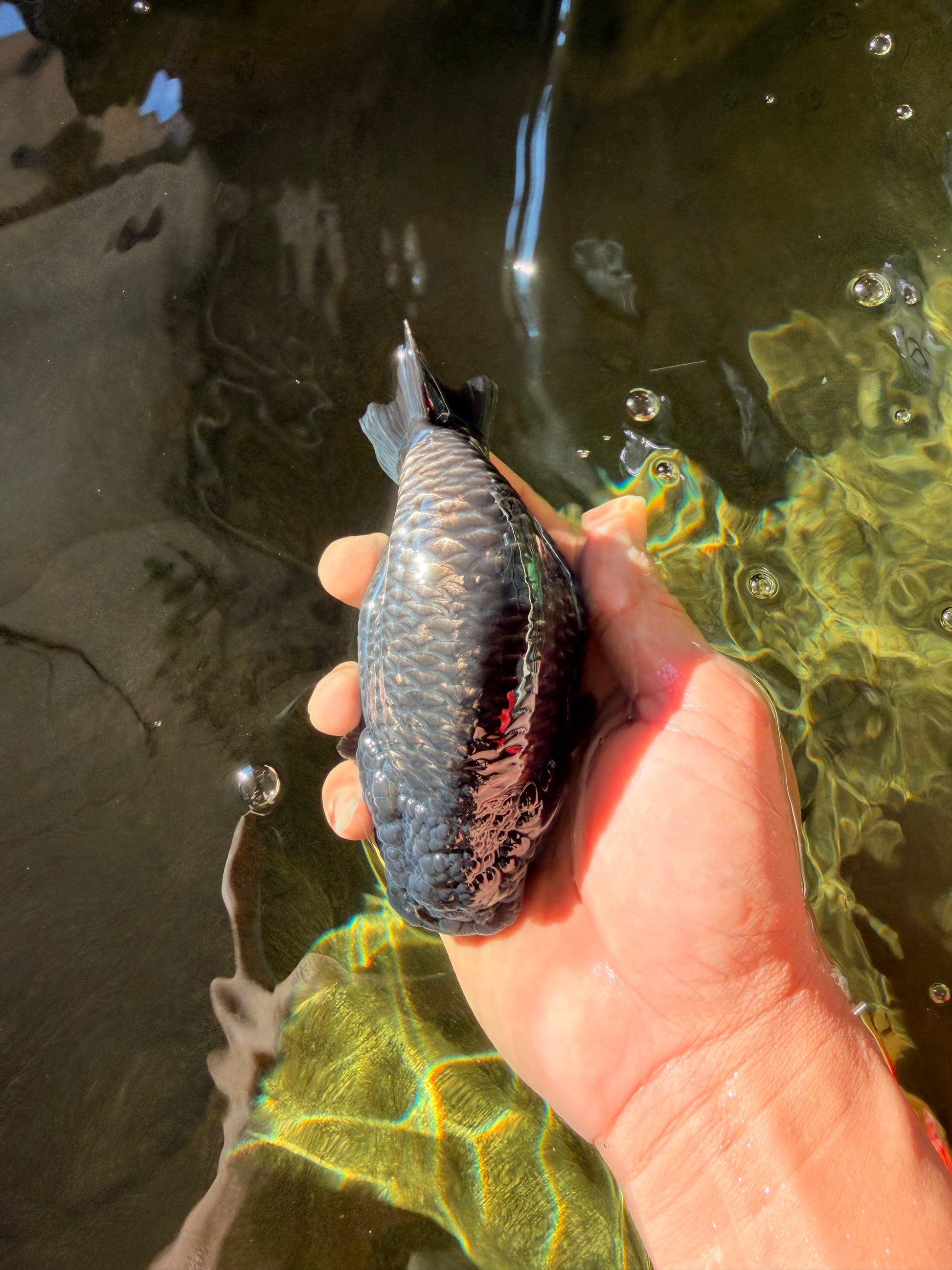 Soft blue tone with a smooth Ranchu back curve and balanced 5” body. Calm swimmer with steady movement. Elegant, clean, and easy to love.