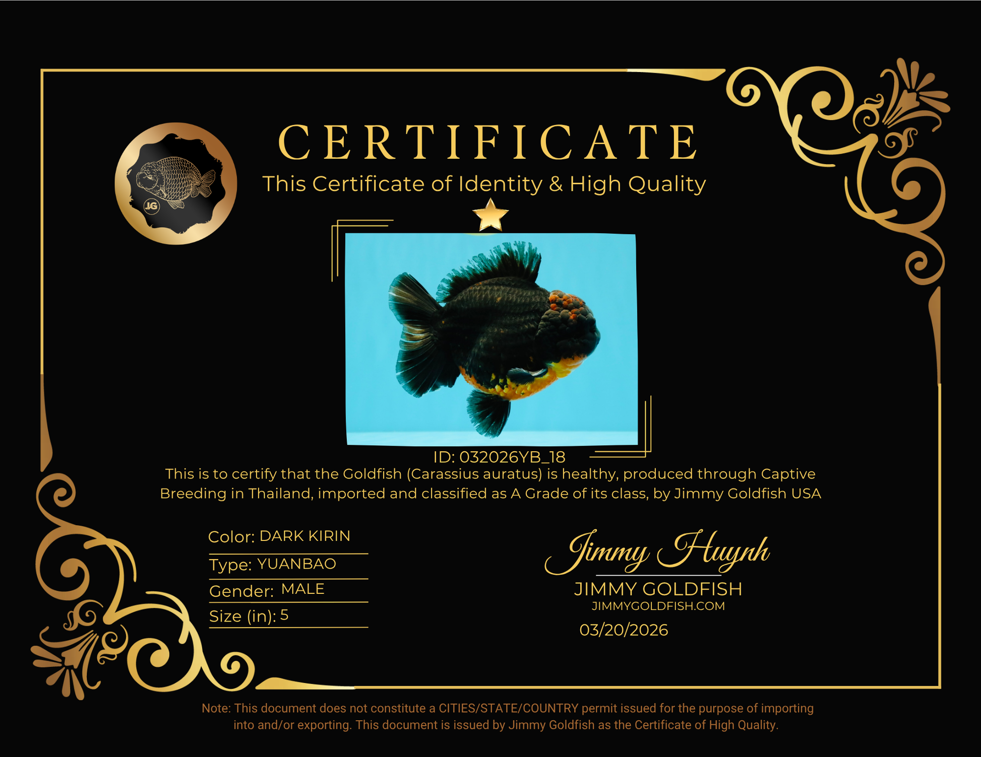 Health: Every fish has completed our strict quarantine procedure. Healthy and active condition. Disease-free guarantee.