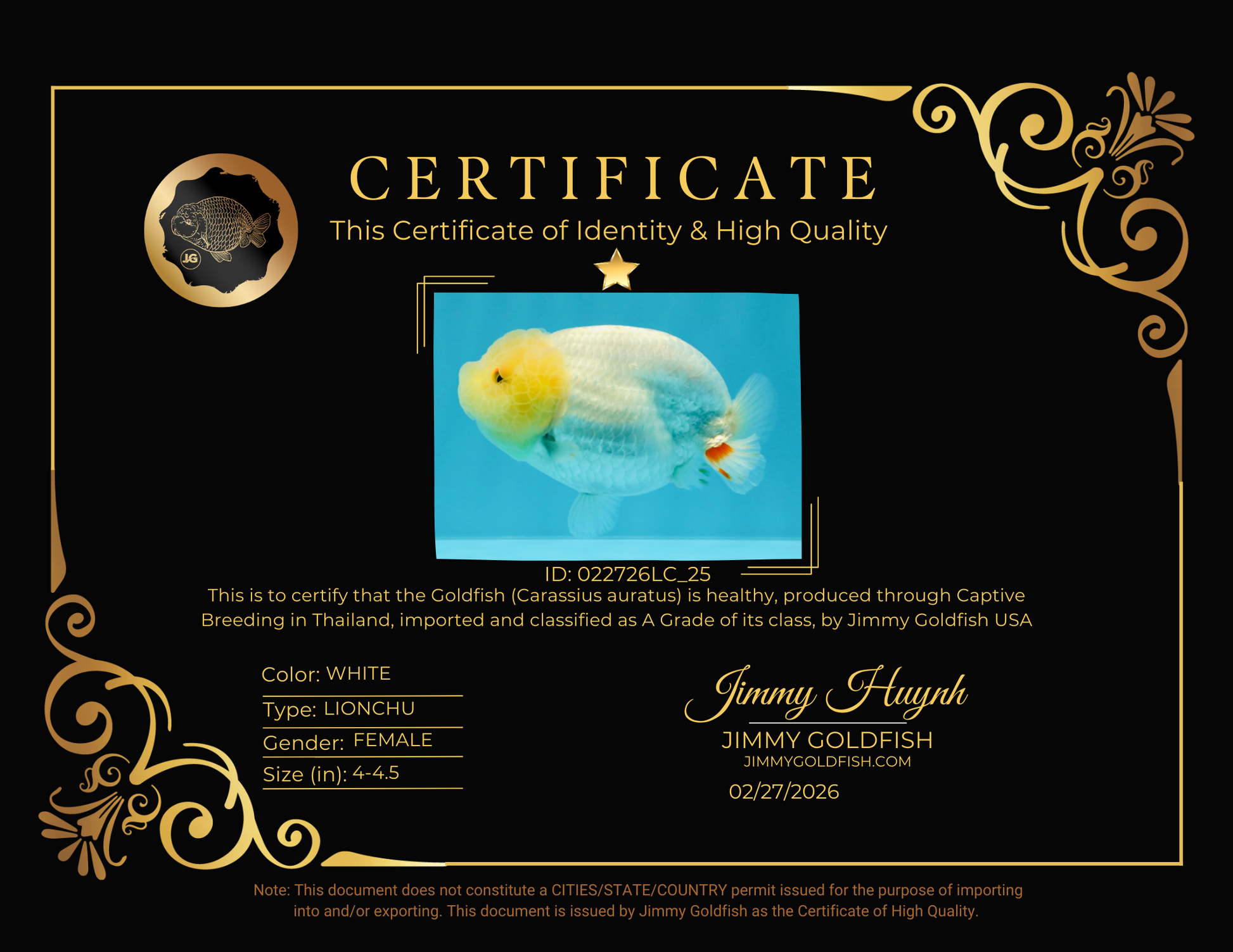 Health: Every fish has completed our strict quarantine procedure. Healthy and active condition. Disease-free guarantee.