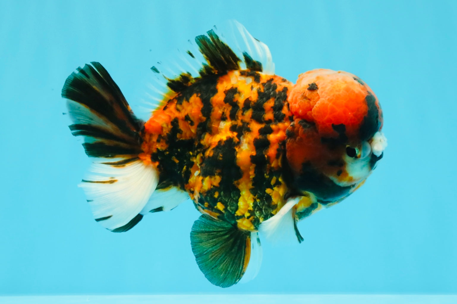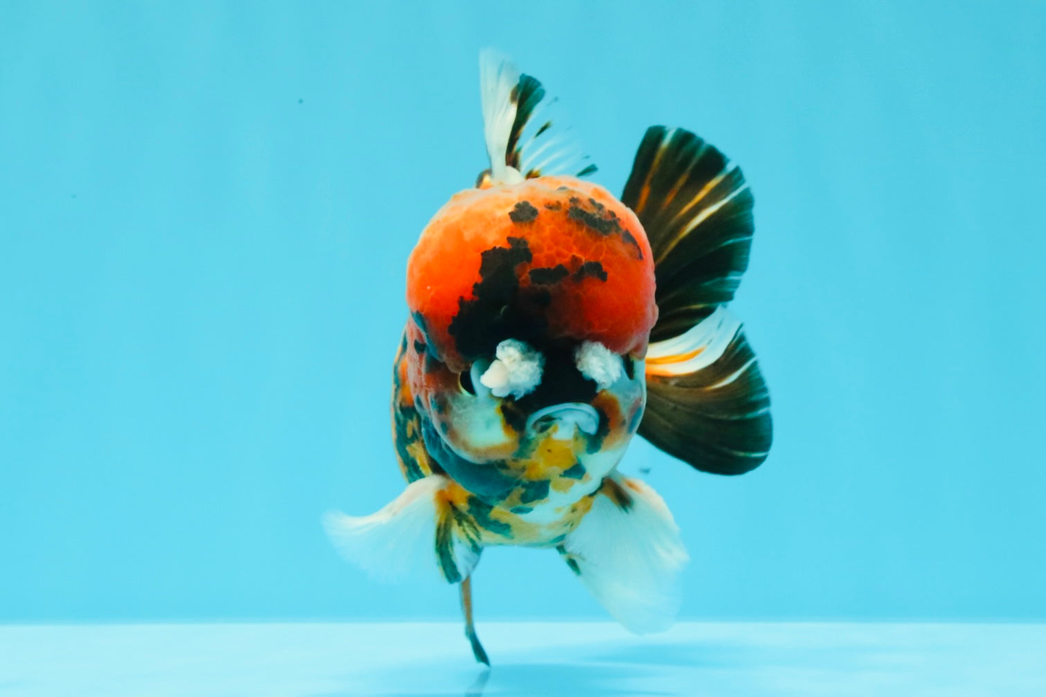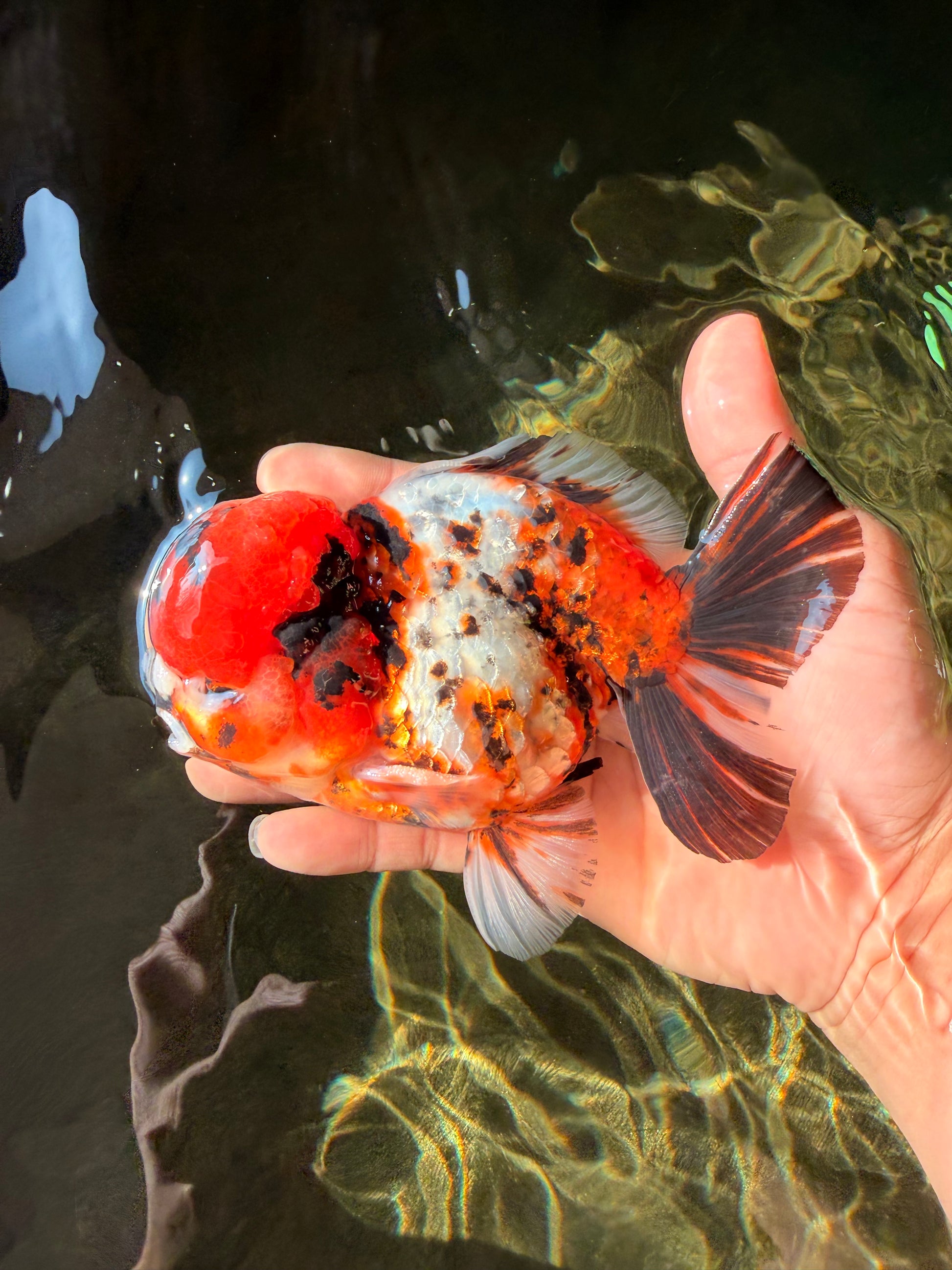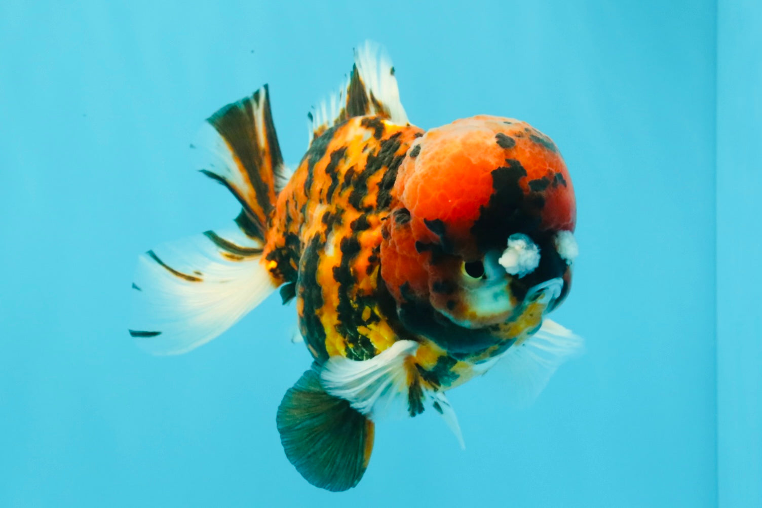 Round Yuanbao body with playful two-tone pattern and pompom nose detail. Thick peduncle and steady swim. Cute, chunky, and full of character.