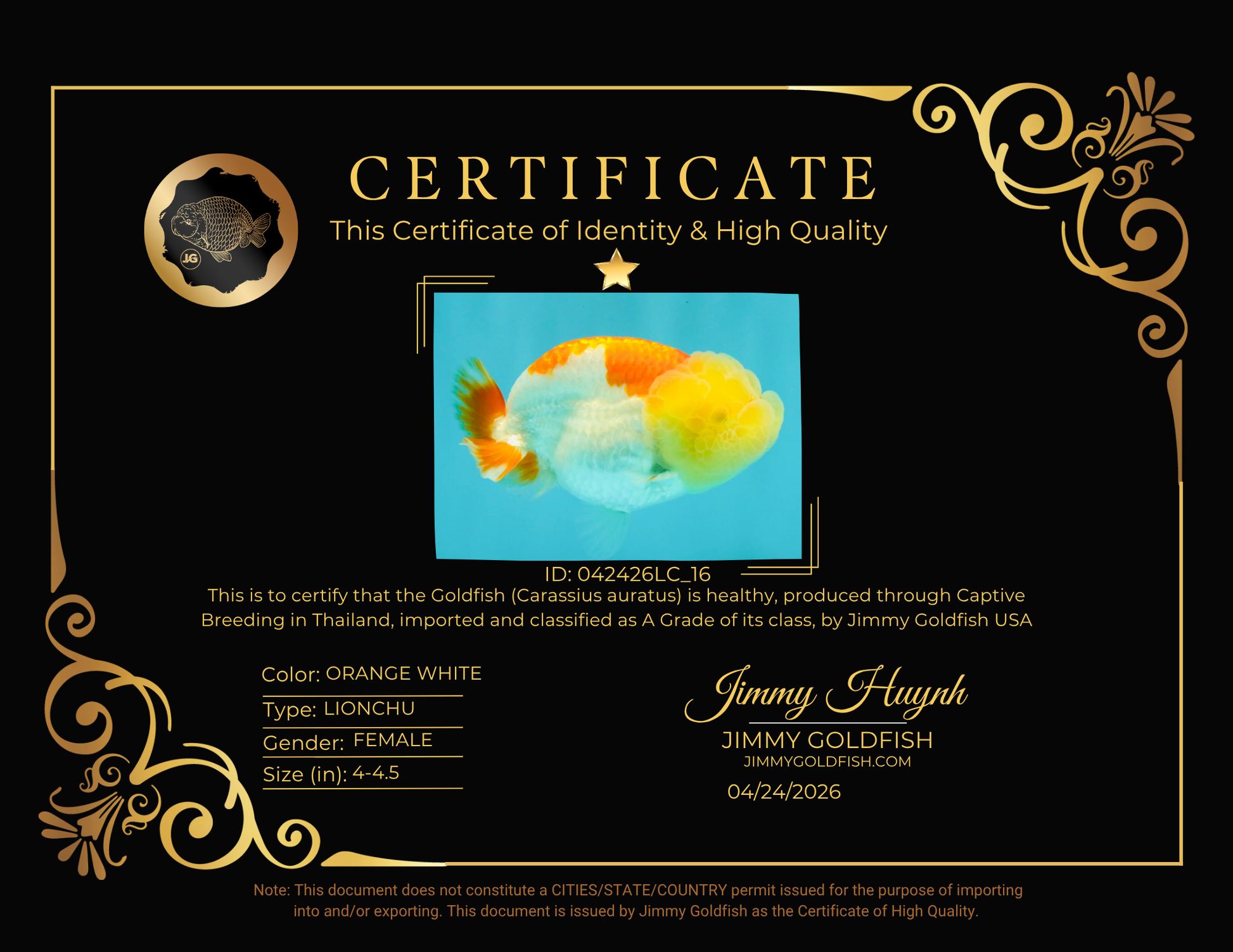 SUPER CUTE A Grade Red White LionQueen Female 4-4.5 inches #042426LC_16
