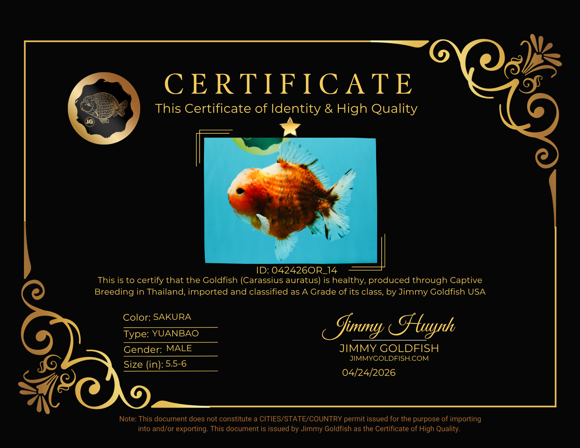 UNIQUE A Grade Sakura Oranda Male 5.5-6 inches #042426OR_14