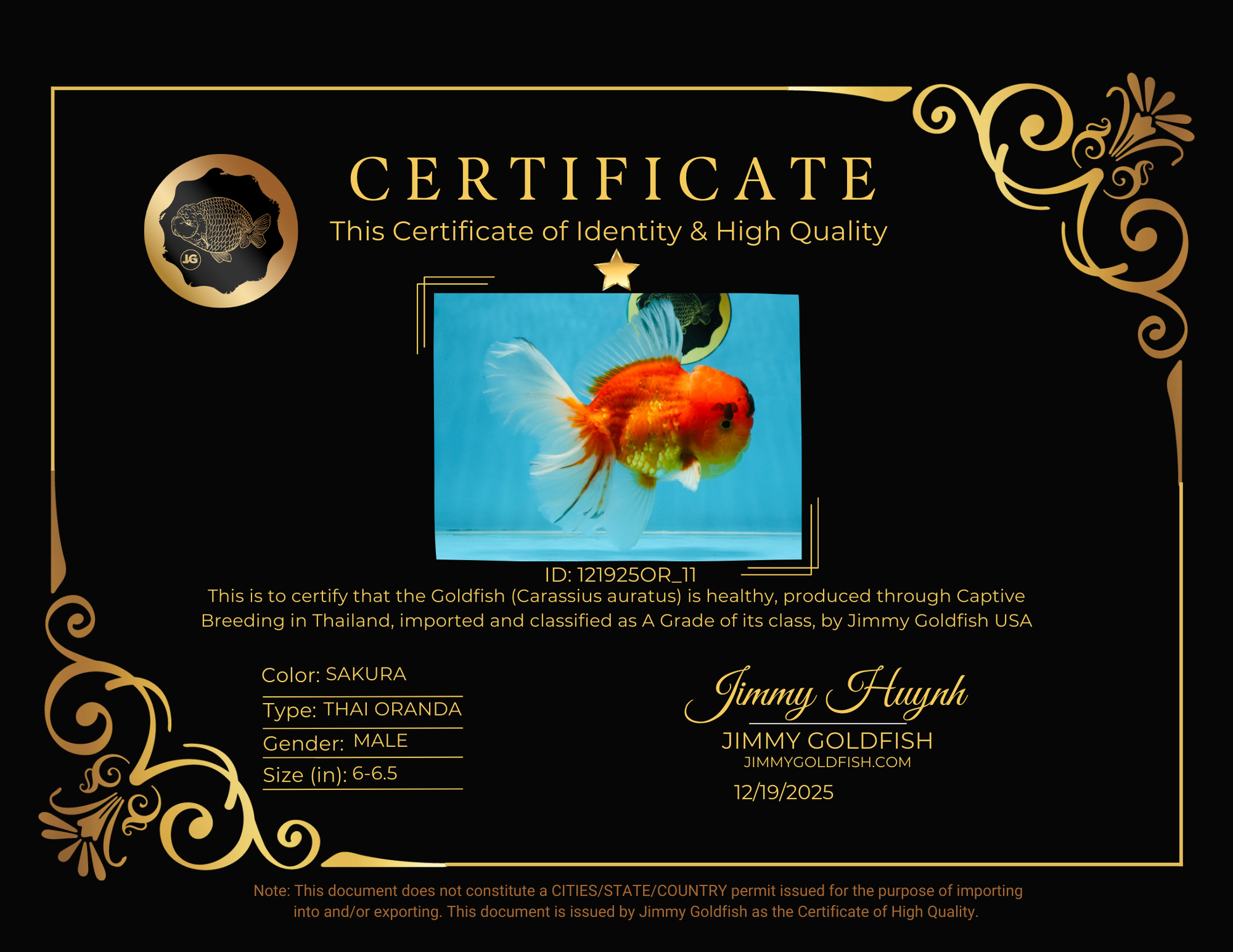 A Grade Sakura Oranda Male 6-6.5 inches #121925OR_11