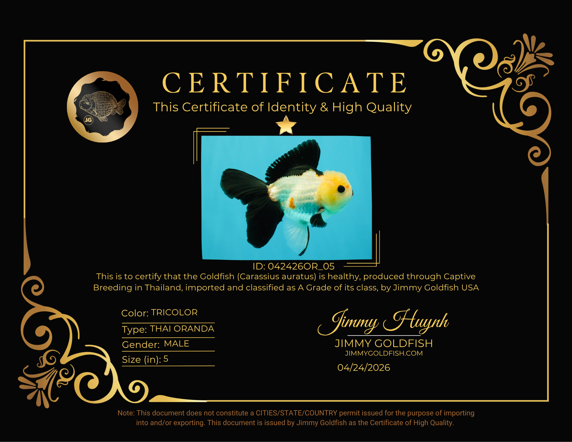 Health: Every fish has completed our strict quarantine procedure. Healthy and active condition. Disease-free guarantee.