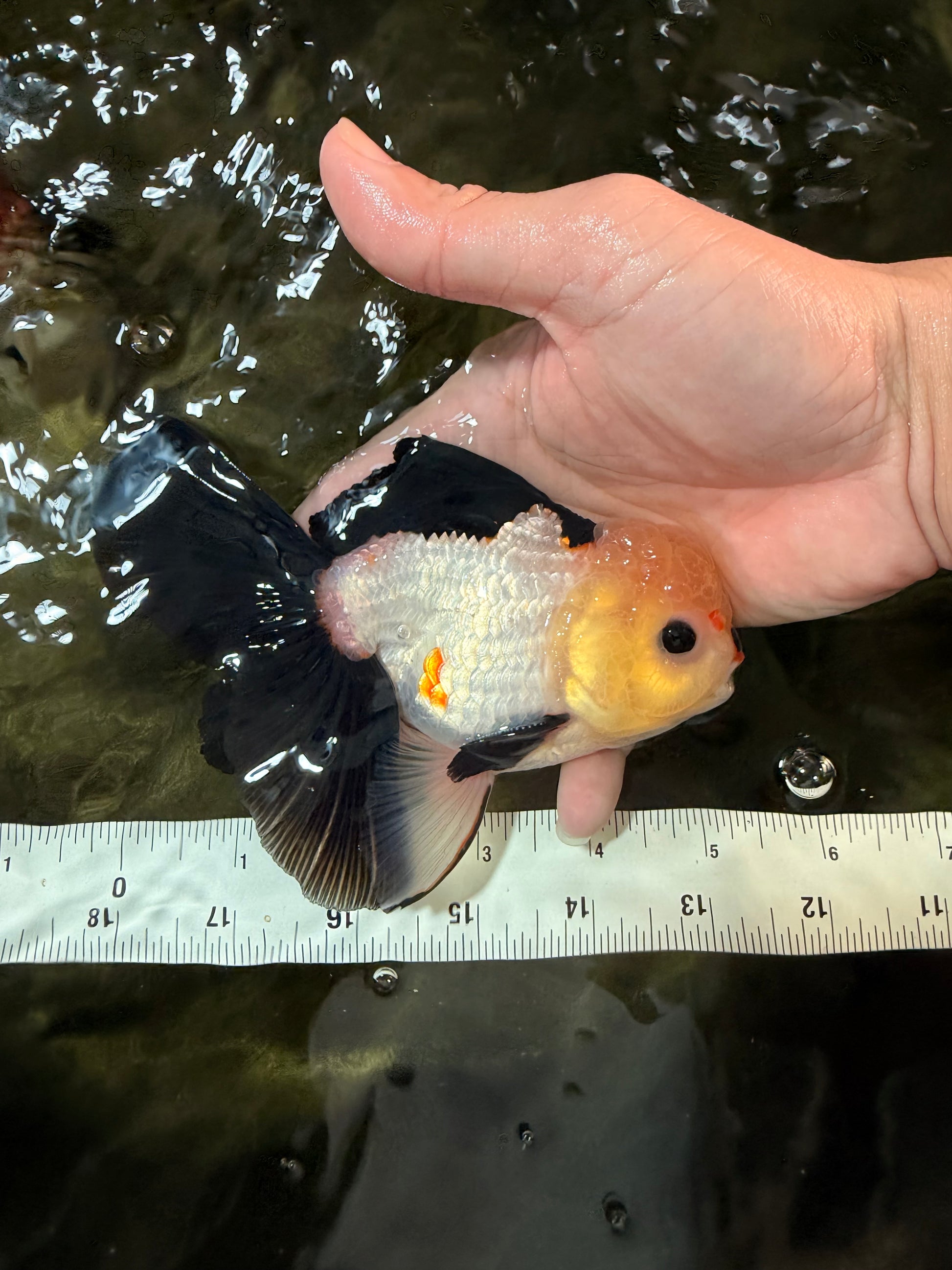 CHARLIE A Grade Tricolor Button Eyes Oranda Male 5 inches #042426OR_05