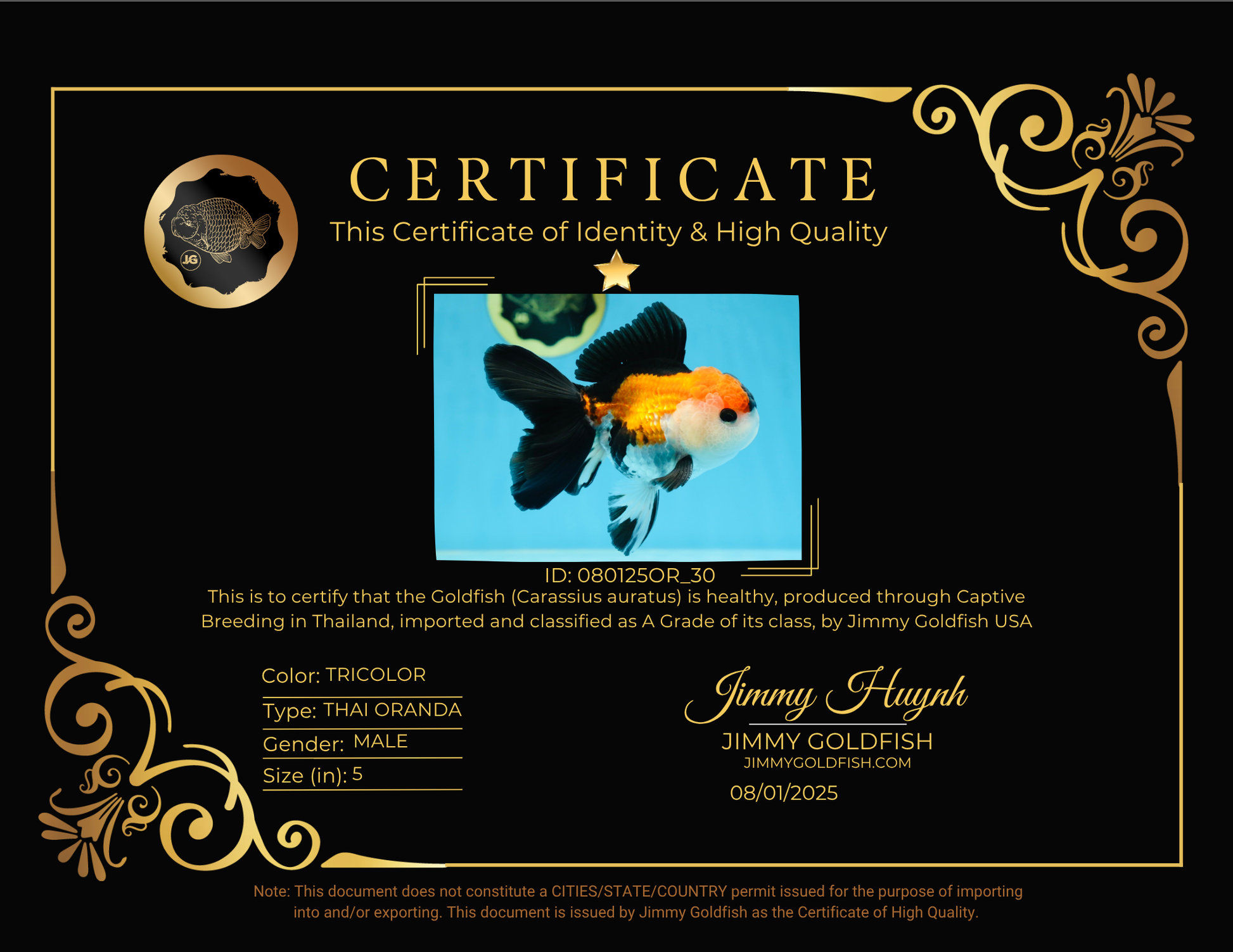 A Grade Tricolor Button Eyes Oranda Male 5 inches #080125OR_30