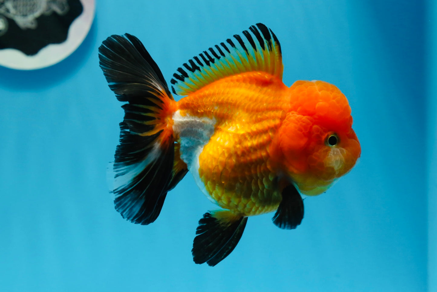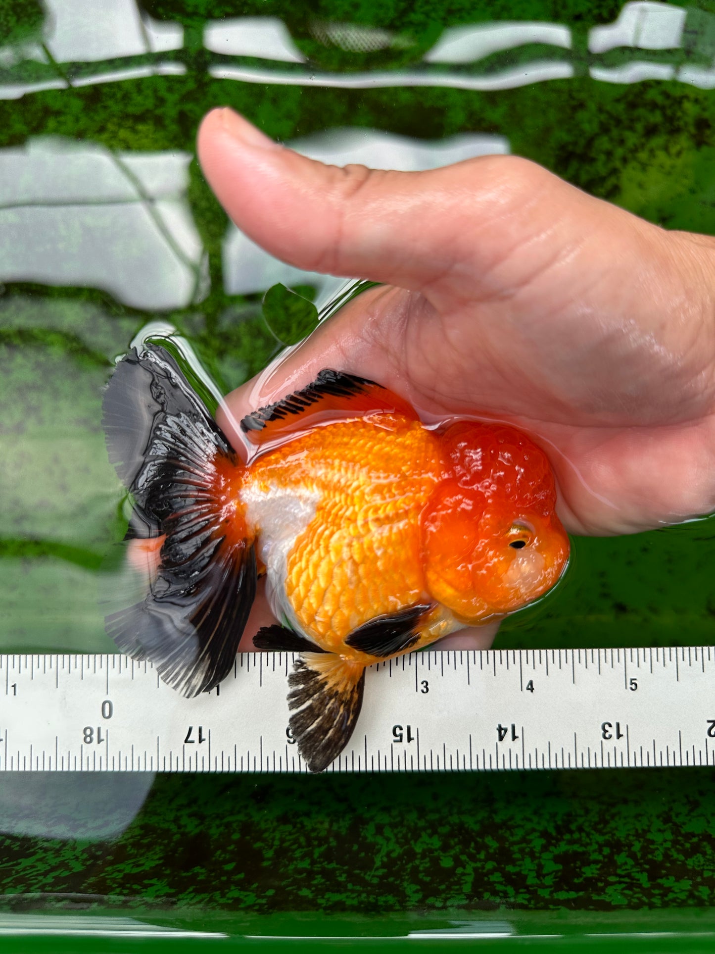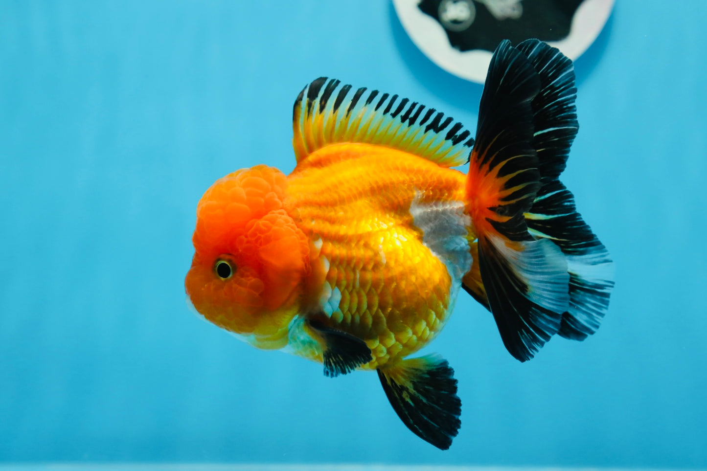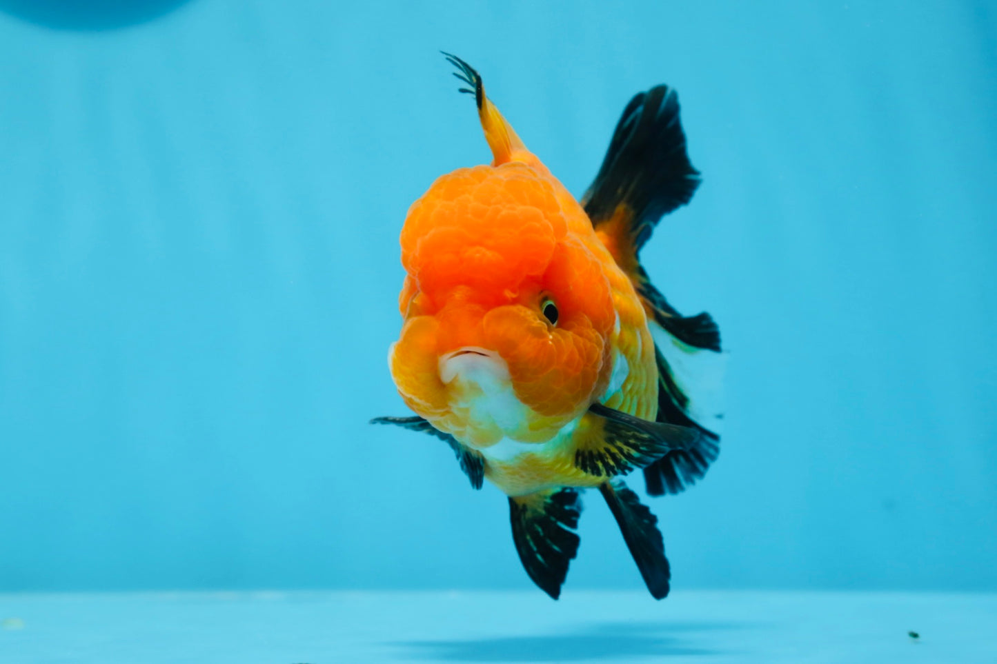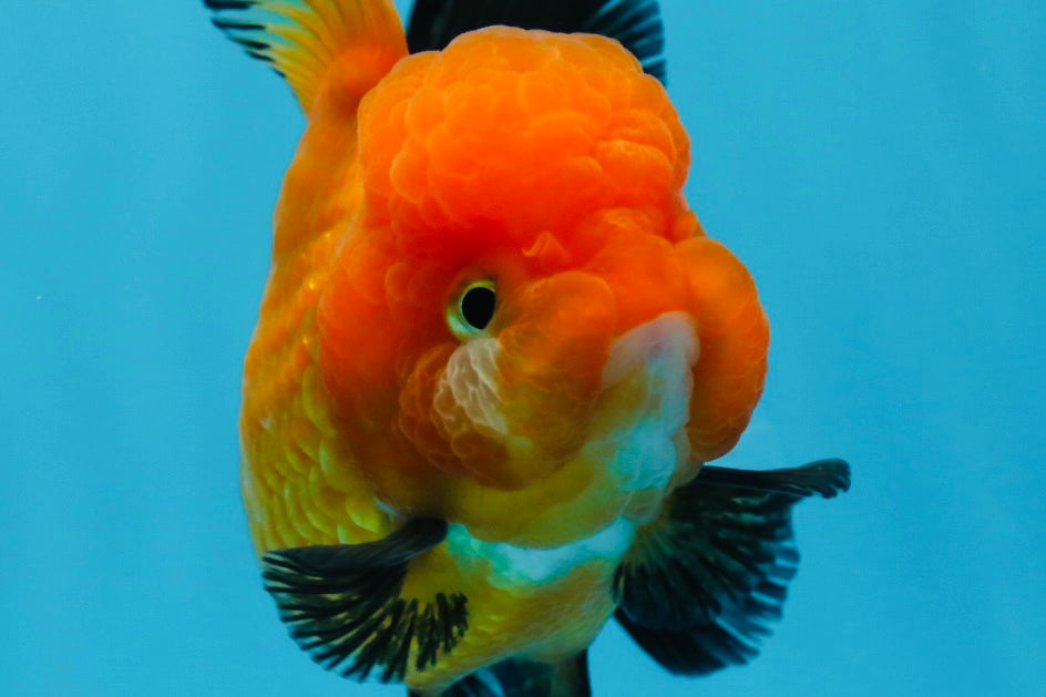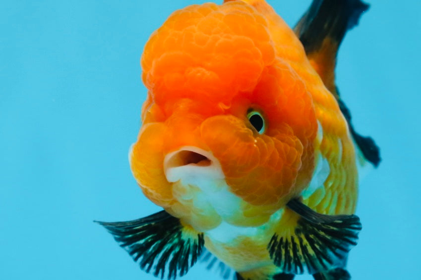 This playful and super healthy 4.5 inch A Grade Tricolor Oranda Female goldfish boasts a vivid orange color and unique high quality markings, making her a beautiful and premium addition to any aquarium. With a lovely character and cute, young face, this high grade selection is sure to bring joy to any fish lover.