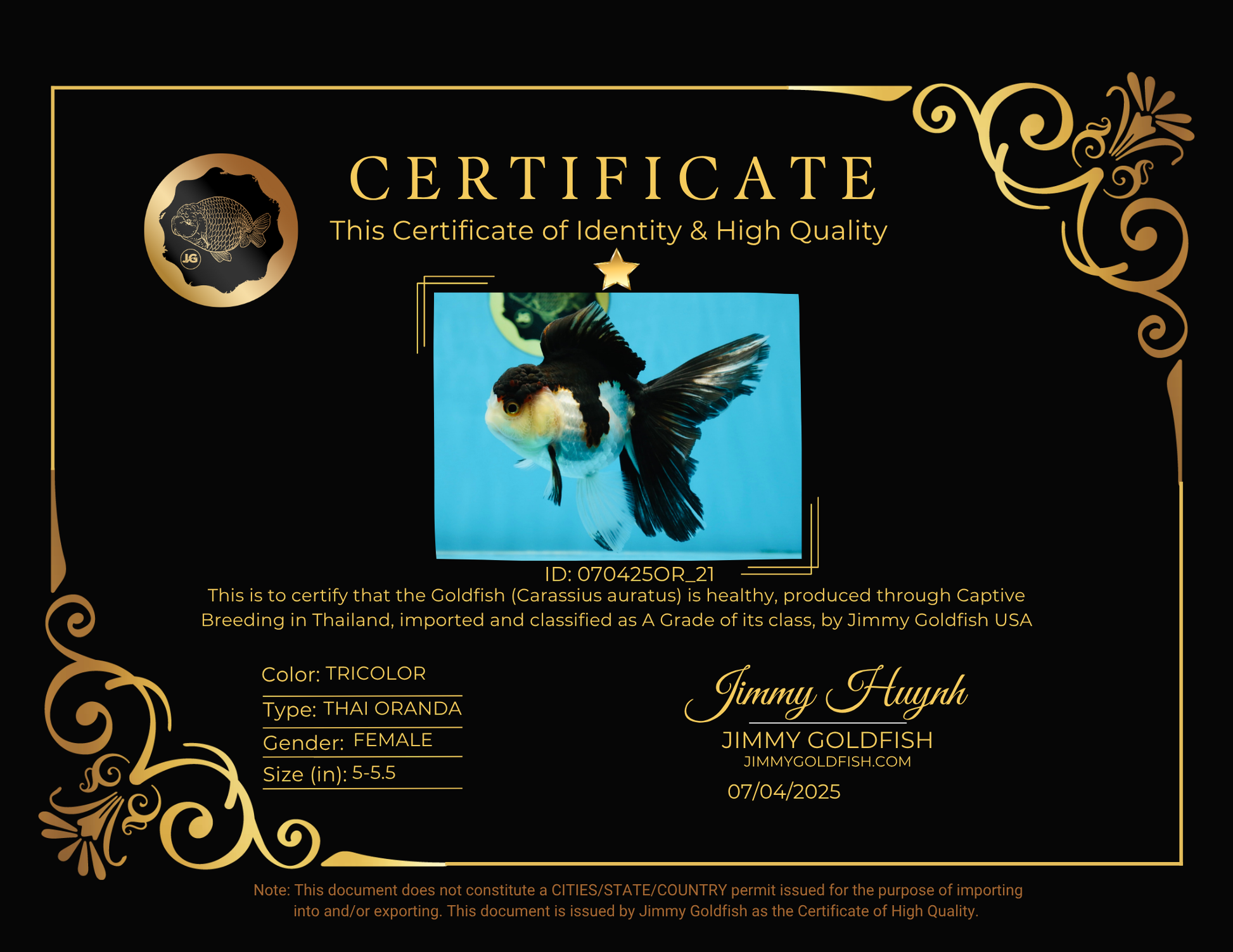A Grade Tricolor Oranda Female 5-5.5 inches #070425OR_21