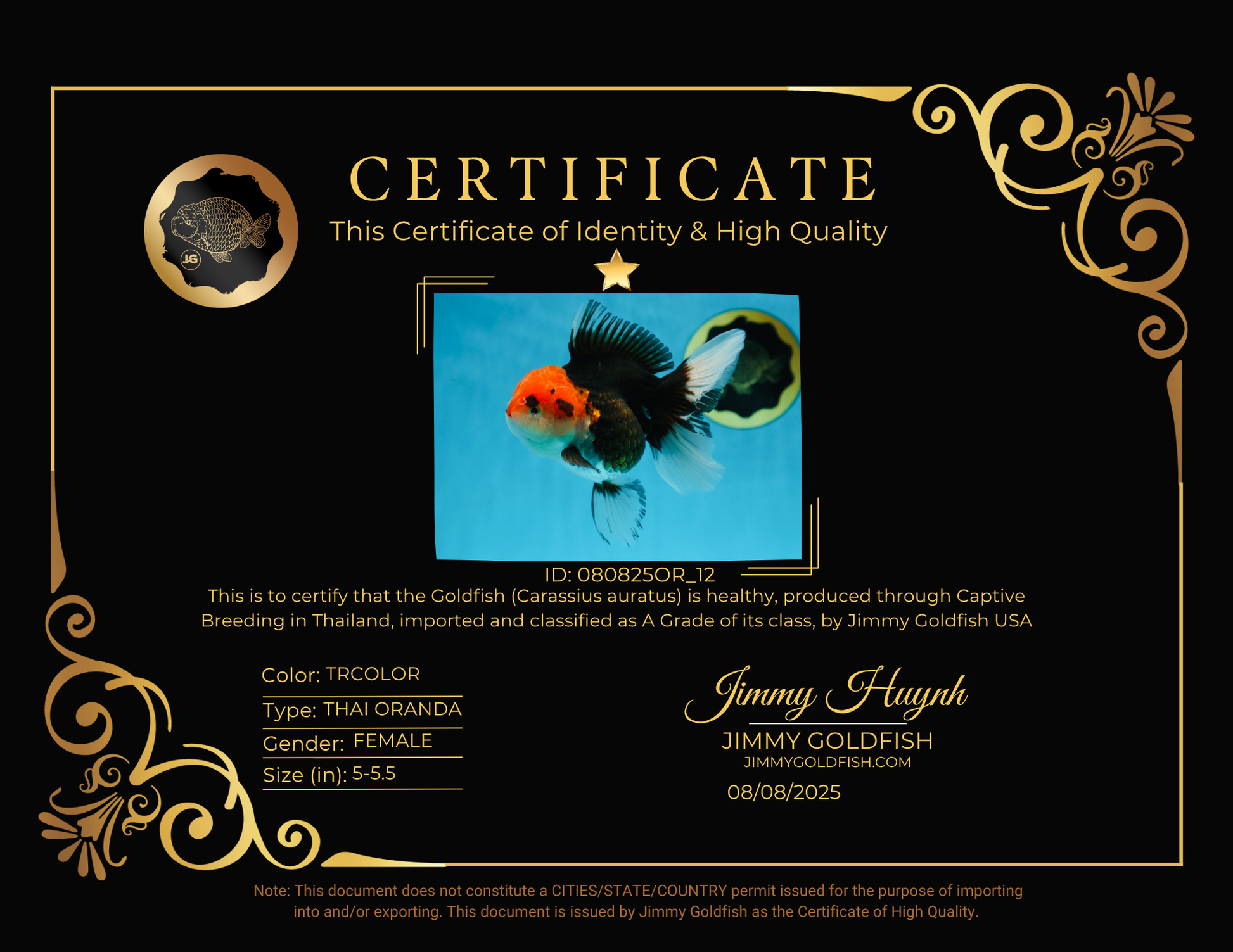 A Grade Tricolor Oranda Female 5-5.5 inches #080825OR_12