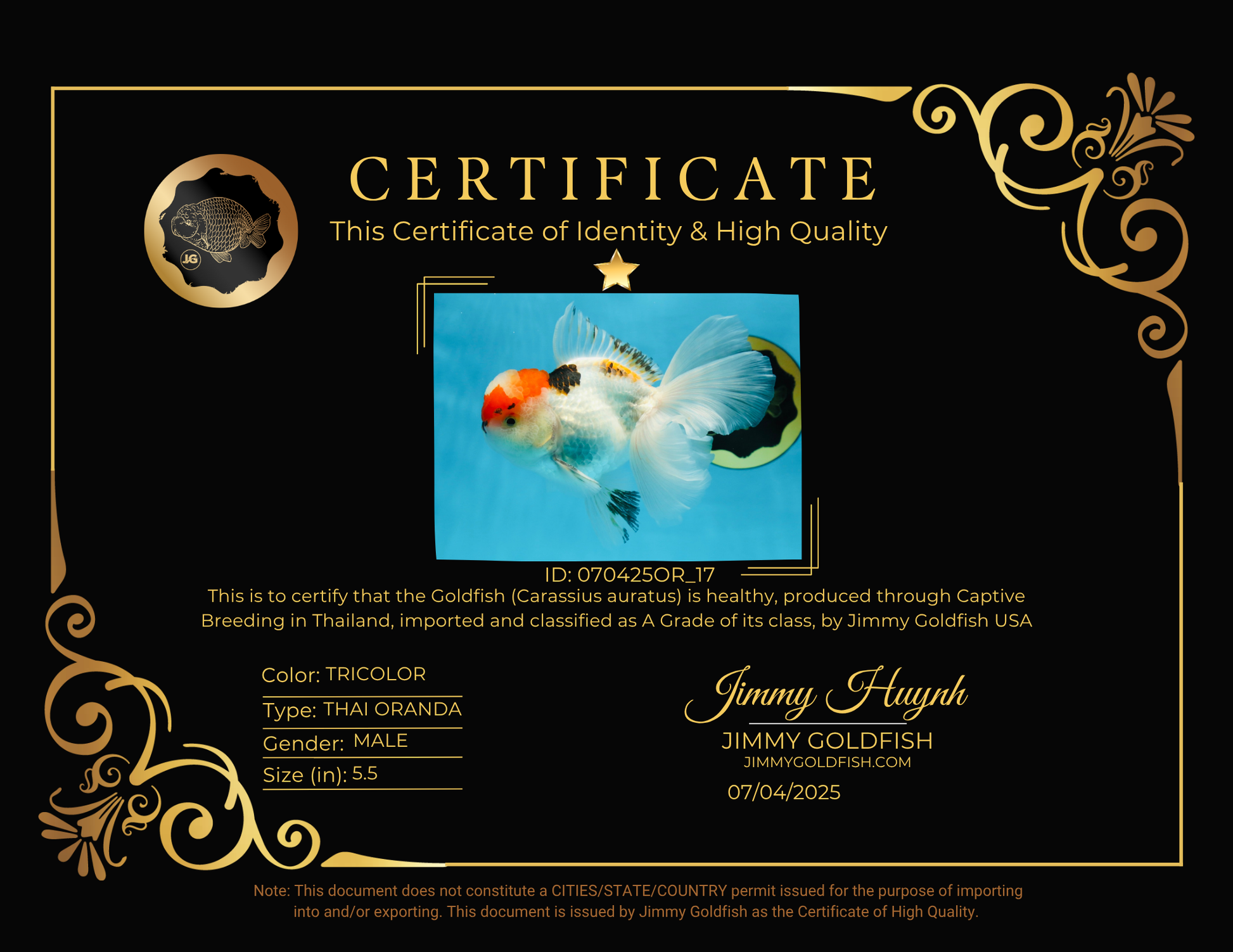 A Grade Tricolor Oranda Male 5.5 inches #070425OR_17