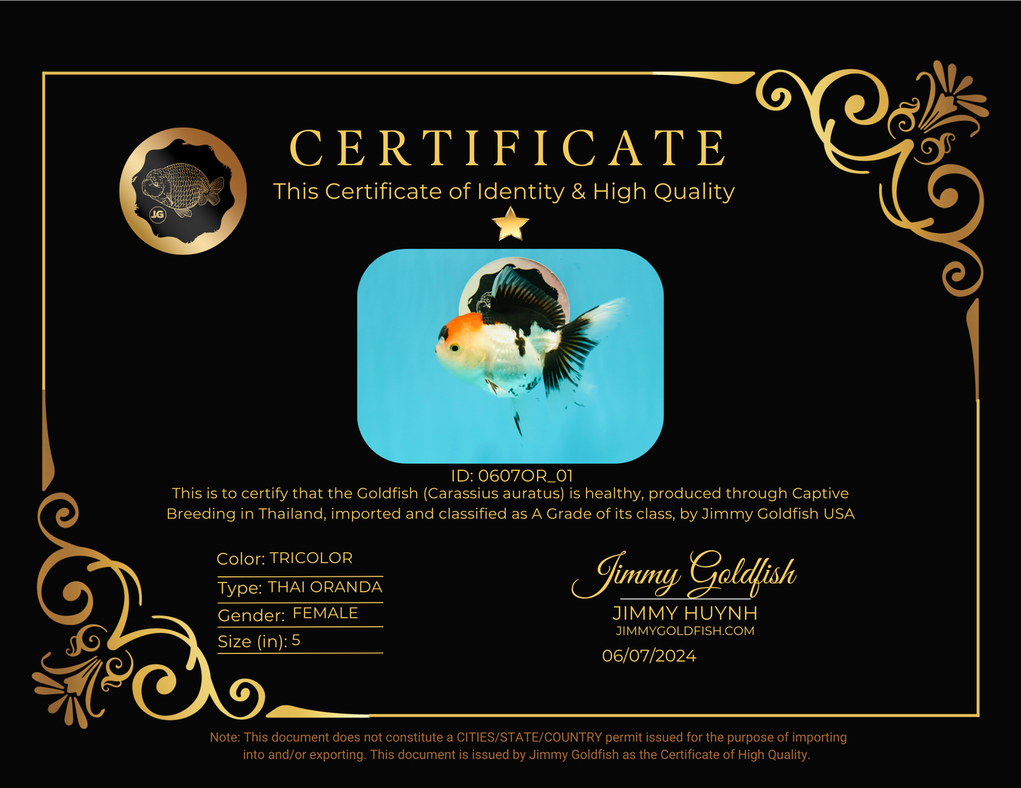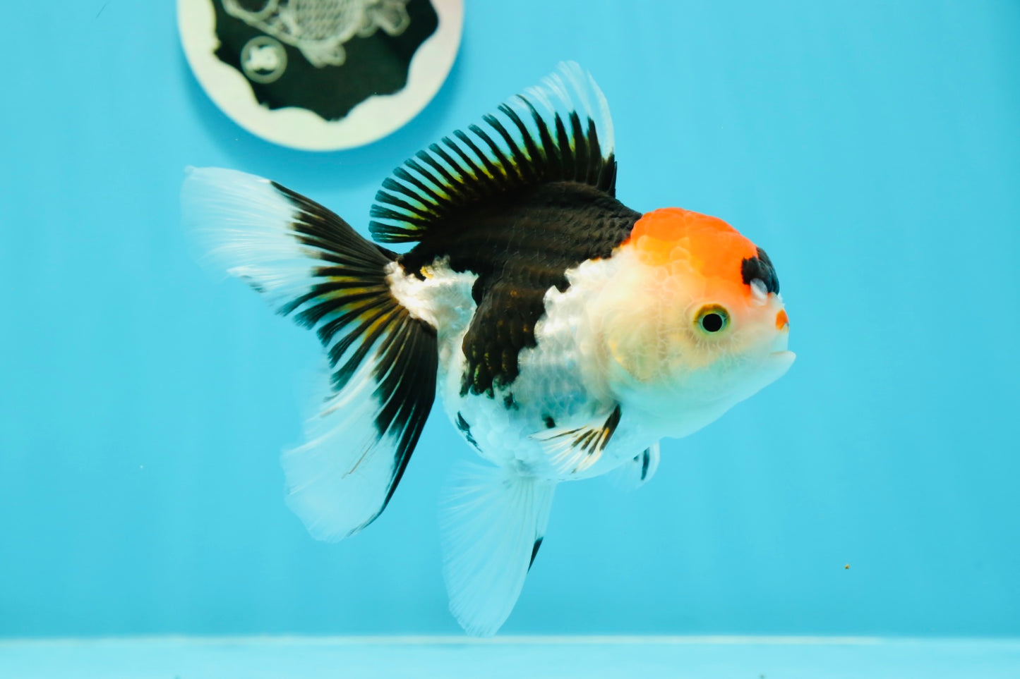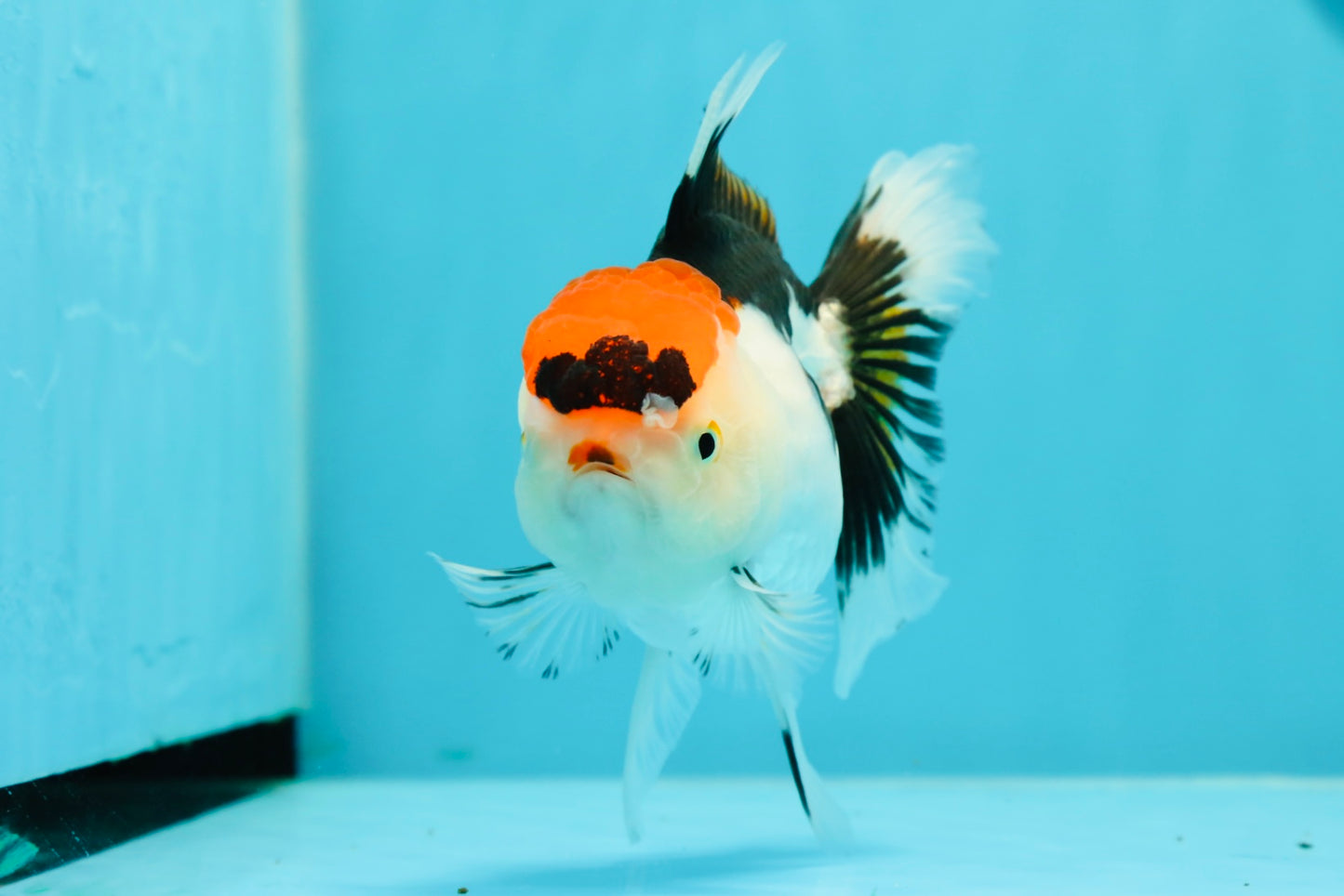Introducing our A Grade Tricolor Oranda Female, a charming and healthy 5-inch goldfish with a unique color mark. This premium selection boasts a lovely character and playful nature, making it a delightful addition to any aquarium. With its beautiful appearance and high quality, this fish is sure to bring joy to your tank.