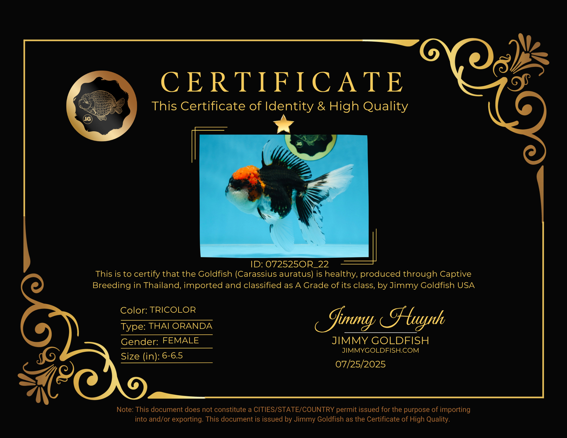 A Grade SUPER WEN Tricolor Oranda Female 6-6.5 inches #072525OR_22