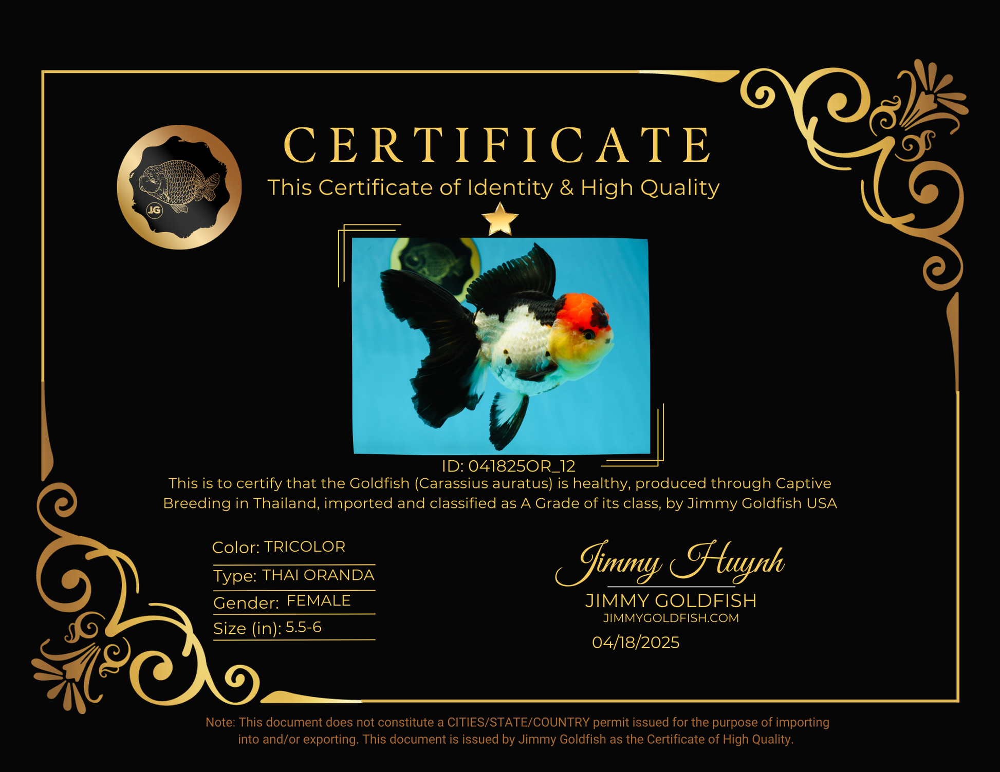 MIKE TYSON A Grade Tricolor Oranda Female 5.5-6 inches #041825OR_12