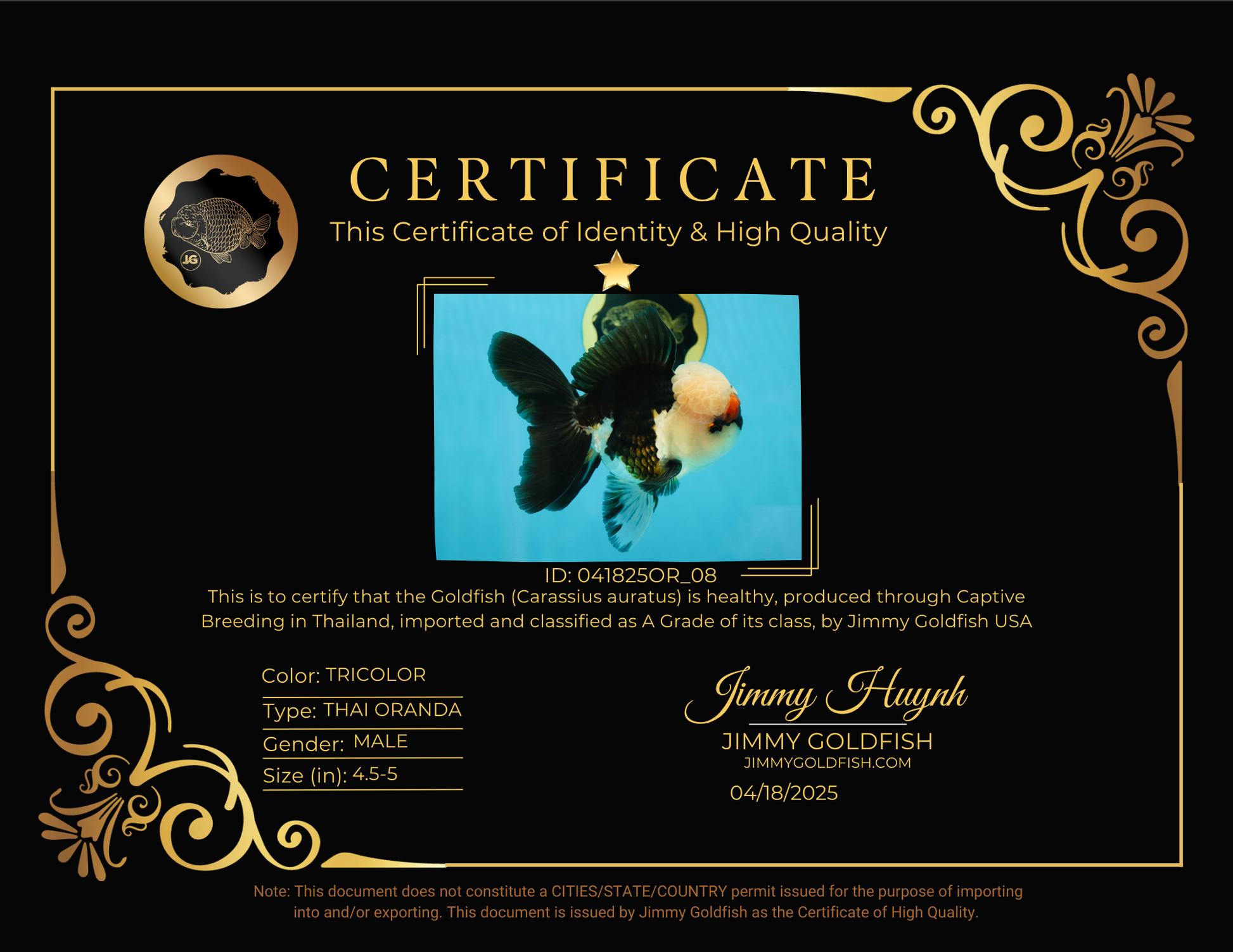 FLUFFY WEN A Grade Mochi Tricolor Oranda Male 4.5-5 inches #041825OR_08