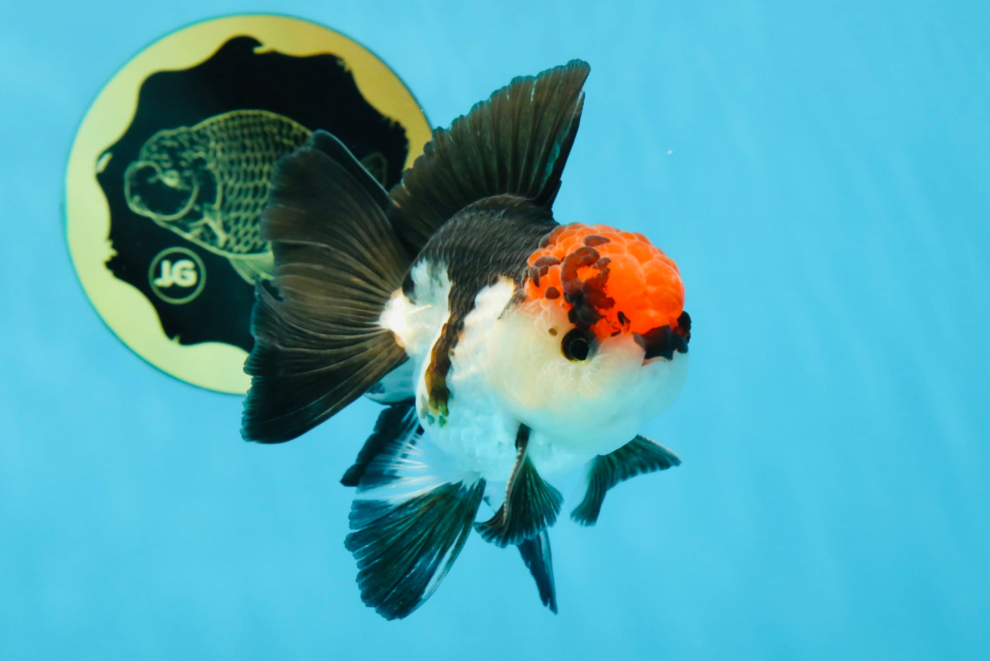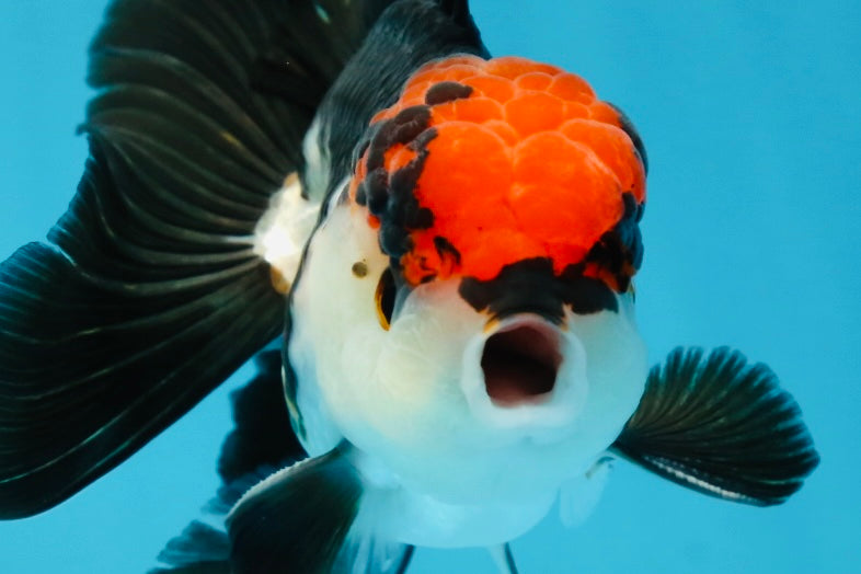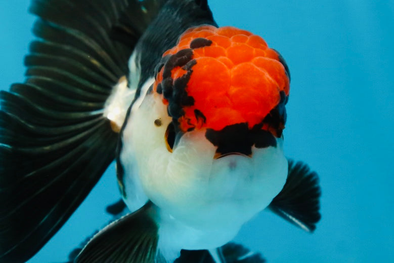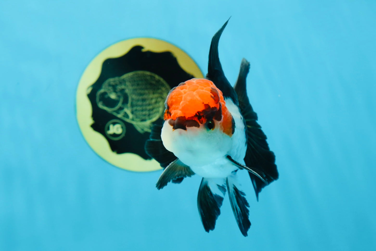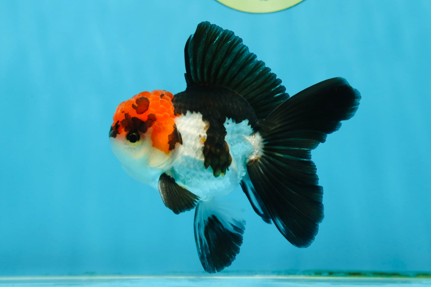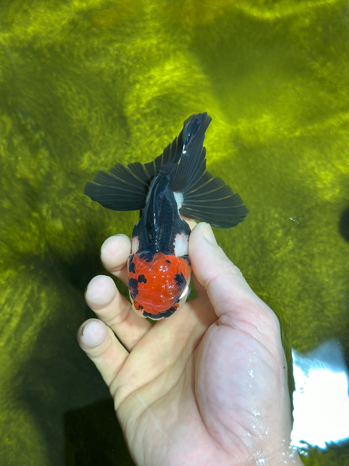 This Oranda showcases a mix of black, white, and orange hues in perfect harmony. A balanced swimmer with a bold personality. #JimmyStyle