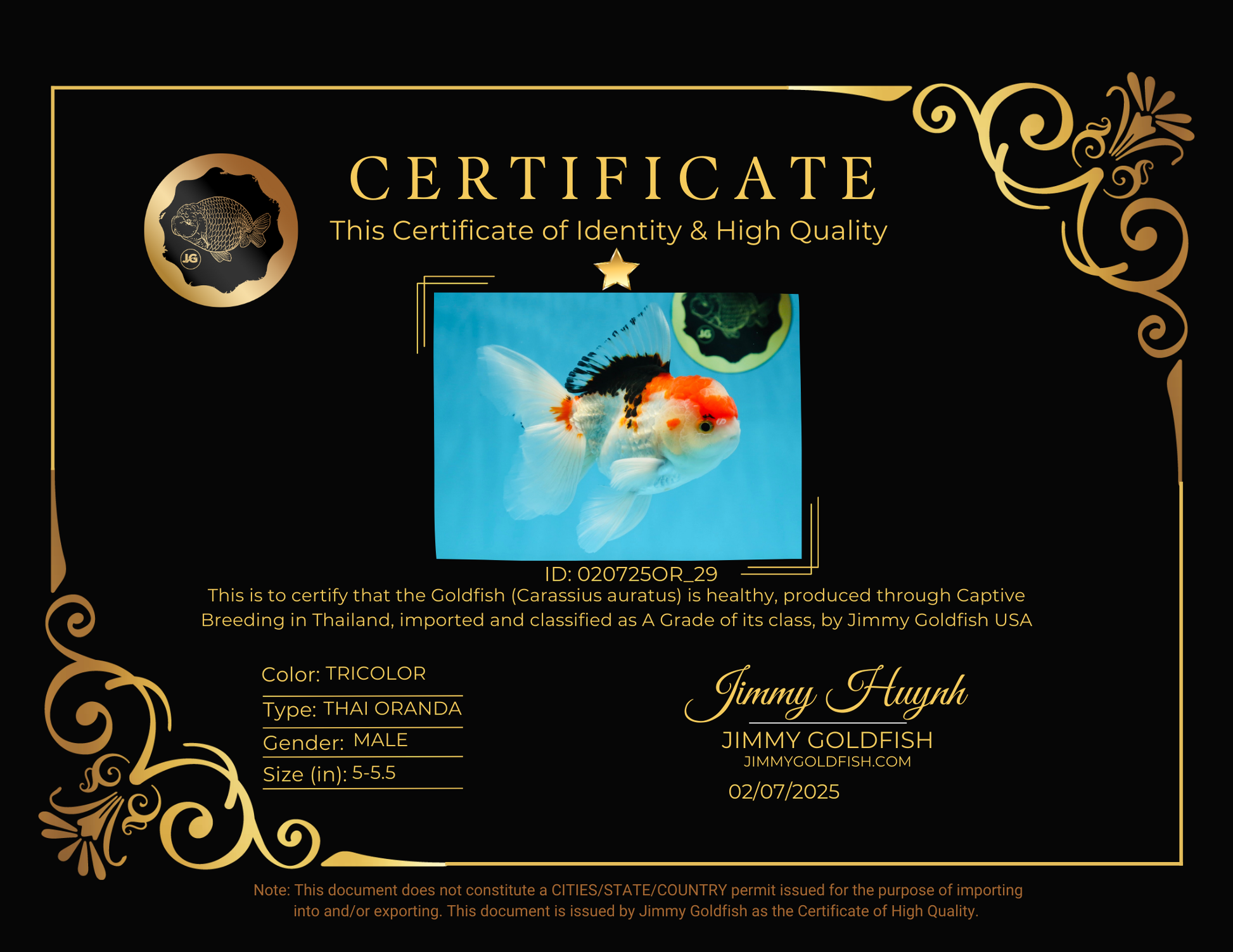 A Grade Tricolor Gem Oranda Male 5-5.5 inches #020725OR_29