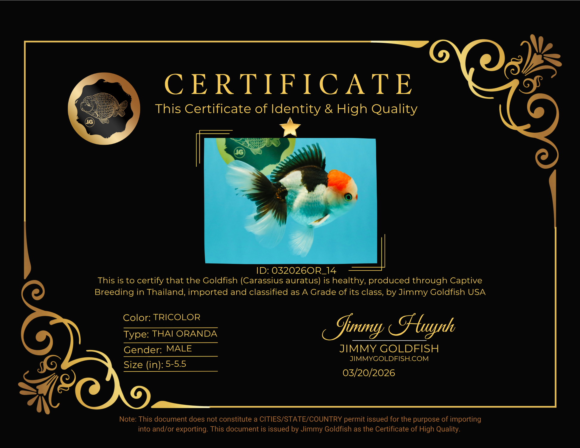 CLOWN A Grade Tricolor Oranda Male 5-5.5 inches #032026OR_14