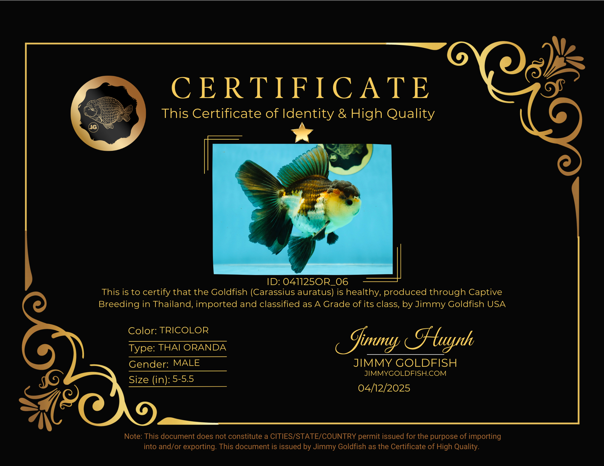 A Grade Tricolor Oranda Male 5-5.5 inches #041125OR_06