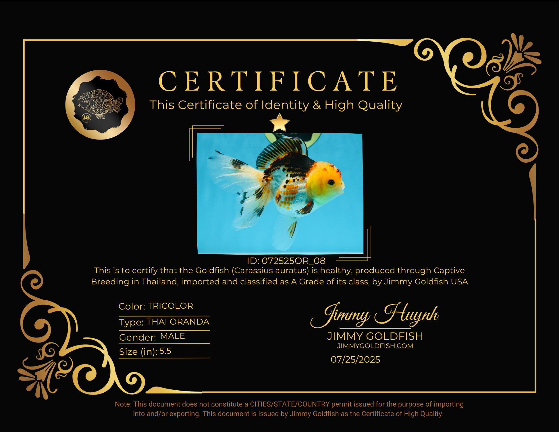 A Grade UNIQUE Tricolor Oranda Male 5.5 inches #072525OR_08