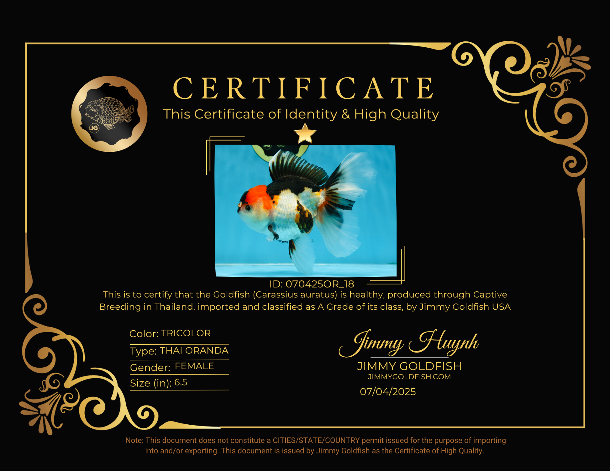 A Grade Tricolor Oranda Female 6.5 inches #070425OR_18
