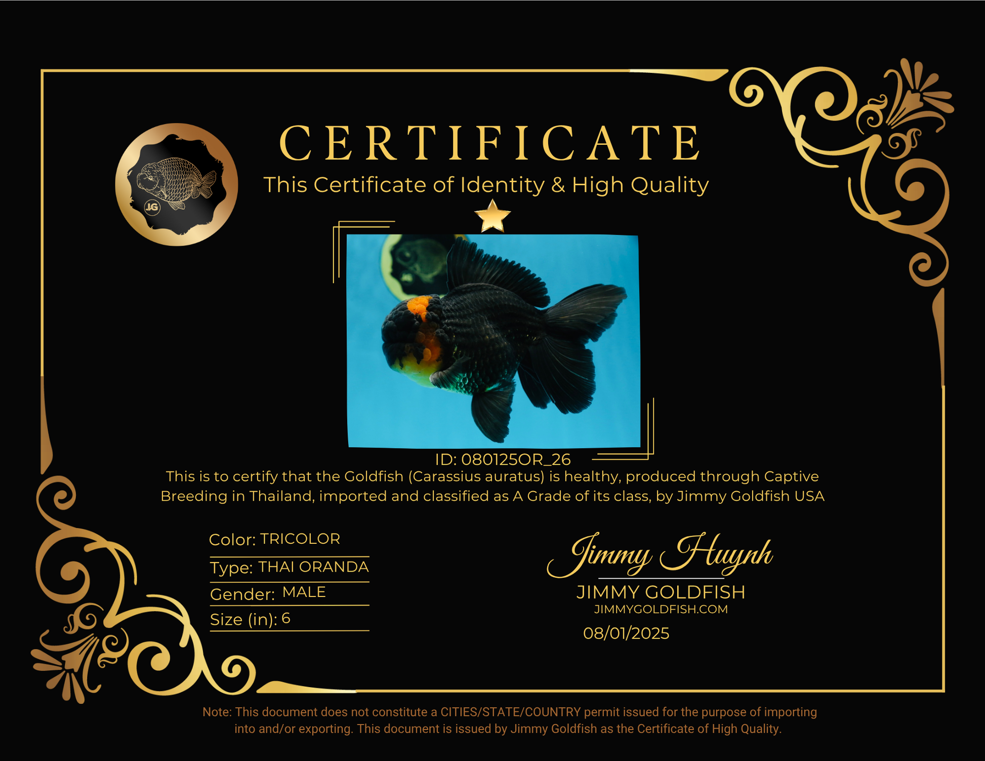 Health: Every fish has completed our strict quarantine procedure. Healthy and active condition. Disease-free guarantee.