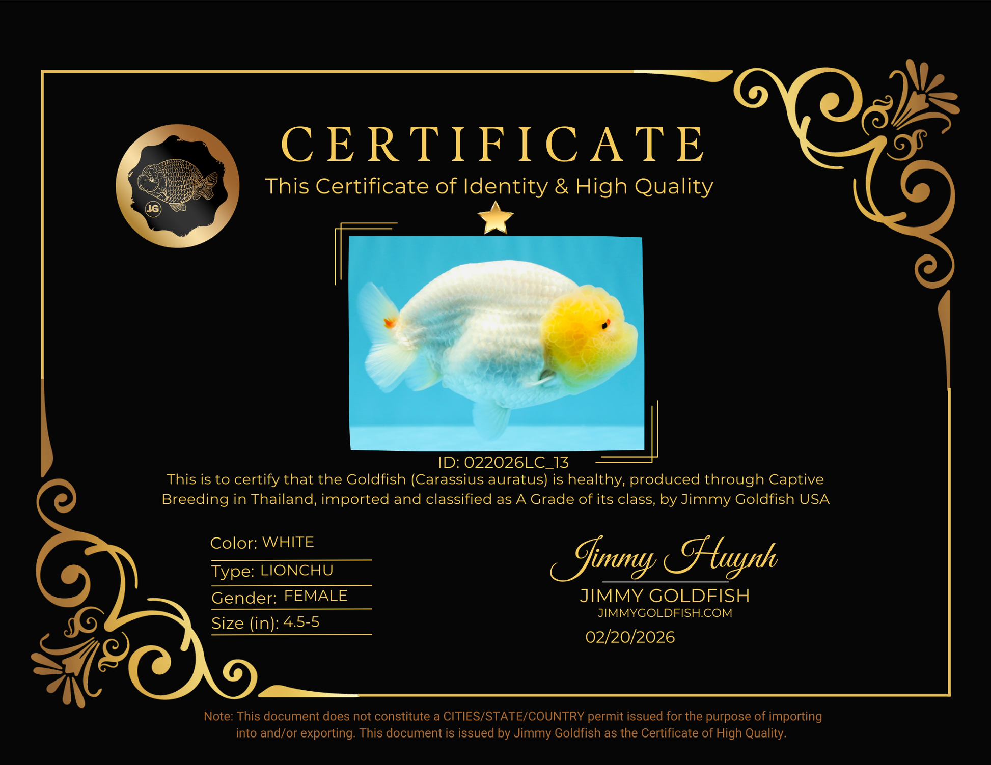 Health: Every fish has completed our strict quarantine procedure. Healthy and active condition. Disease-free guarantee.