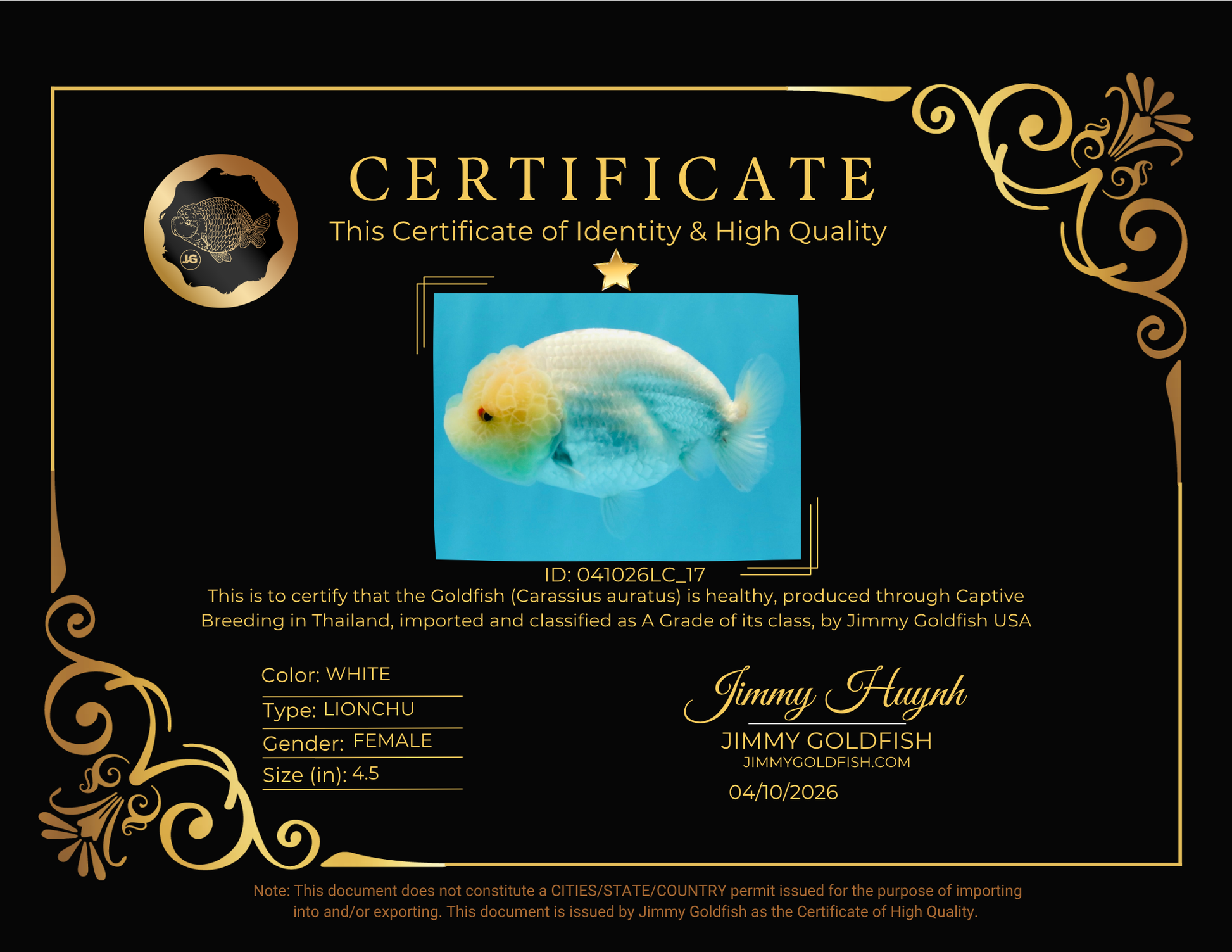 SUPER CUTE A Grade White LionQueen Female 4.5 inches #041026LC_17