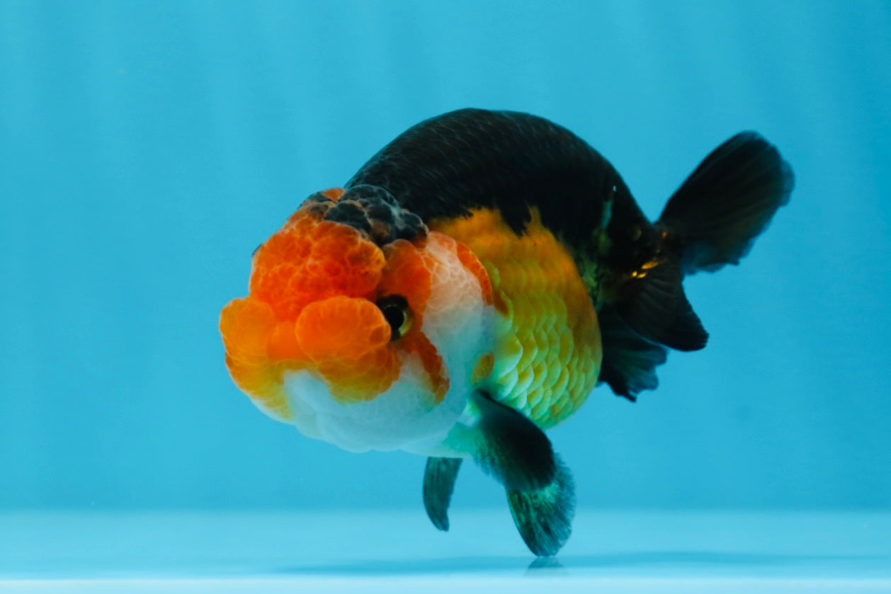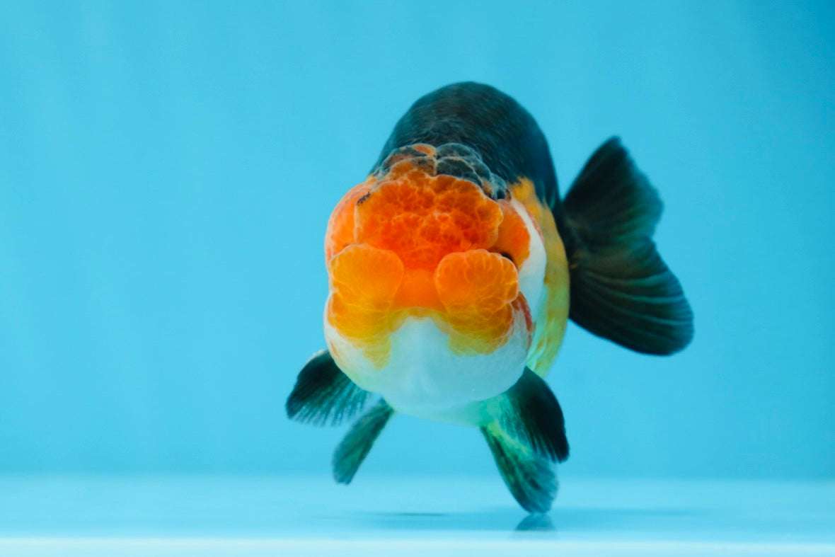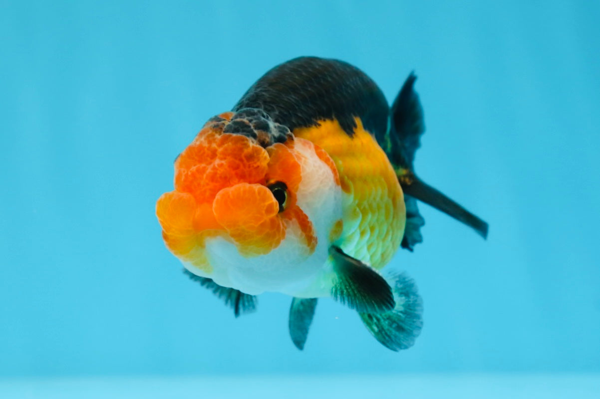Introducing our A Grade Young Tricolor Ranchu Male! This 4 inches goldfish boasts a unique color mark, high quality selection, and a lovely character. With a playful and cute personality, this super healthy fish is sure to add some charm to your tank. Don't miss out on this premium, high grade beauty!