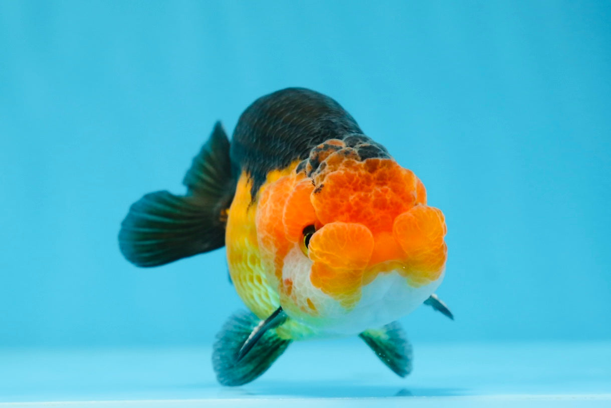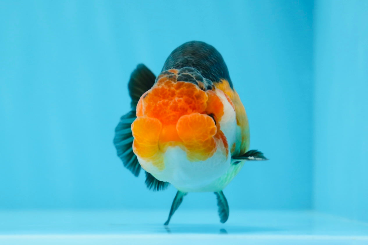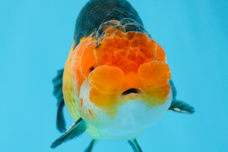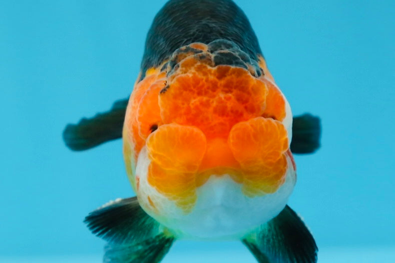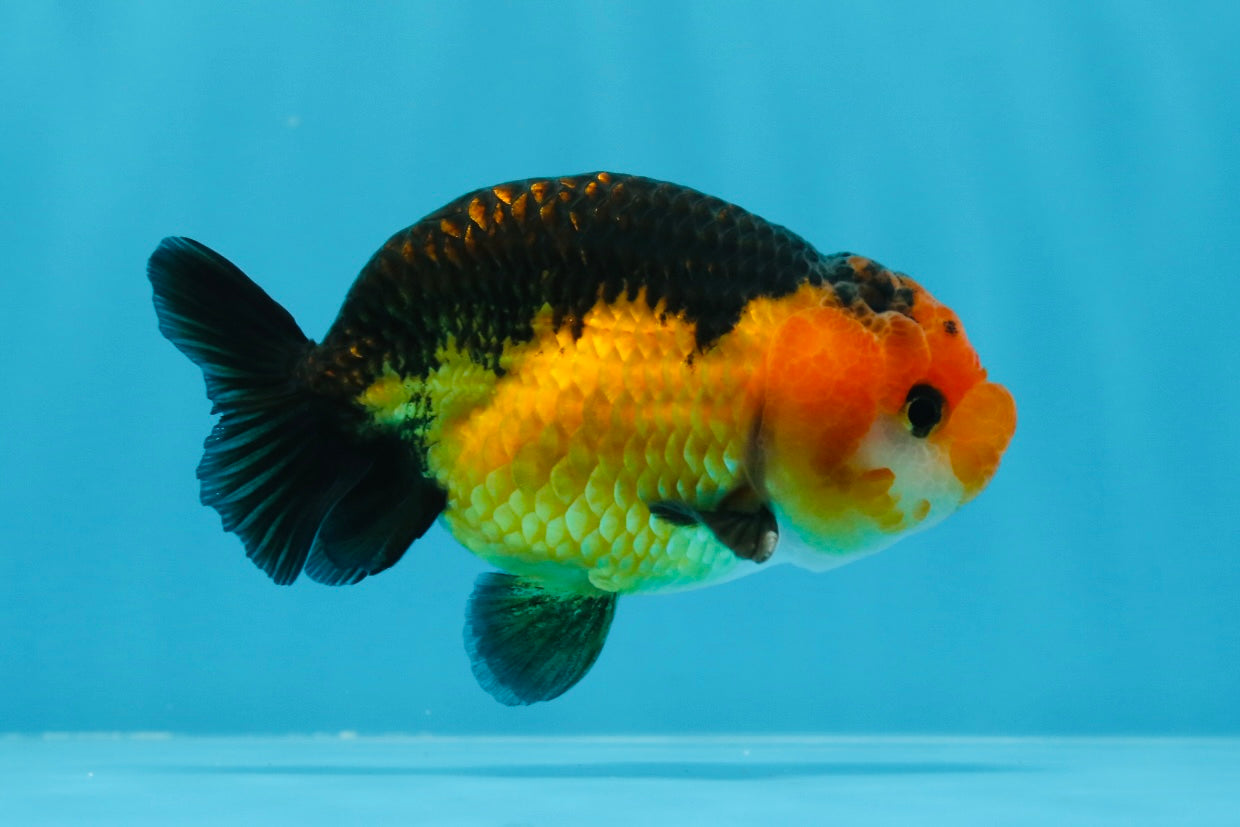 Introducing our A Grade Young Tricolor Ranchu Male! This 4 inches goldfish boasts a unique color mark, high quality selection, and a lovely character. With a playful and cute personality, this super healthy fish is sure to add some charm to your tank. Don't miss out on this premium, high grade beauty!