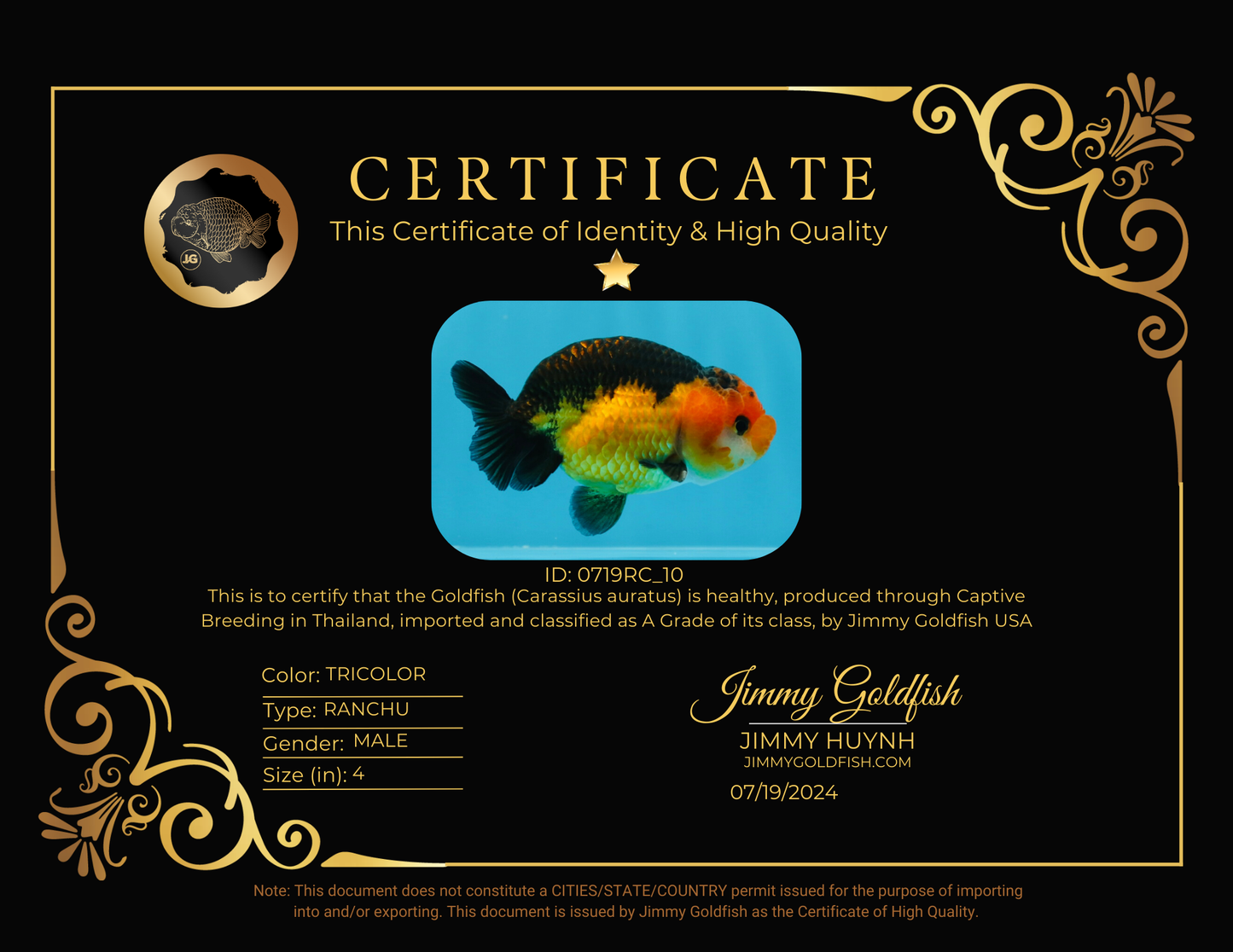 A Grade Young Tricolor Ranchu Male 4 inches #0719RC_10