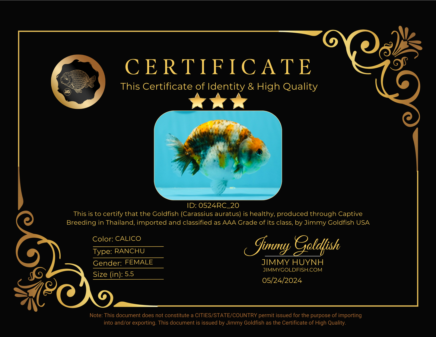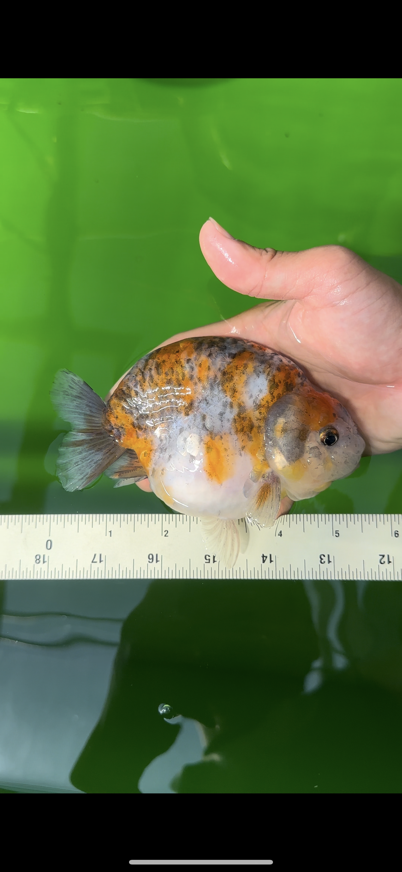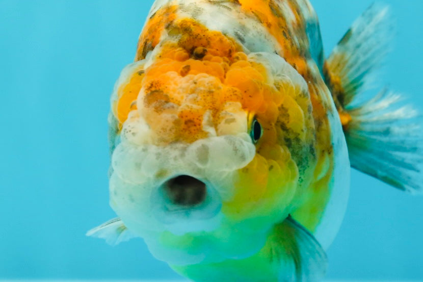 Unleash your inner fish whisperer with our AAA Grade Kirin Calico Ranchu! This 5.5 inch beauty boasts unique color marks and a lovely, chunky body. With a rounded belly and super healthy Jimmy Style, she's the perfect addition to your premium goldfish collection. (#Goals #FishGoals)