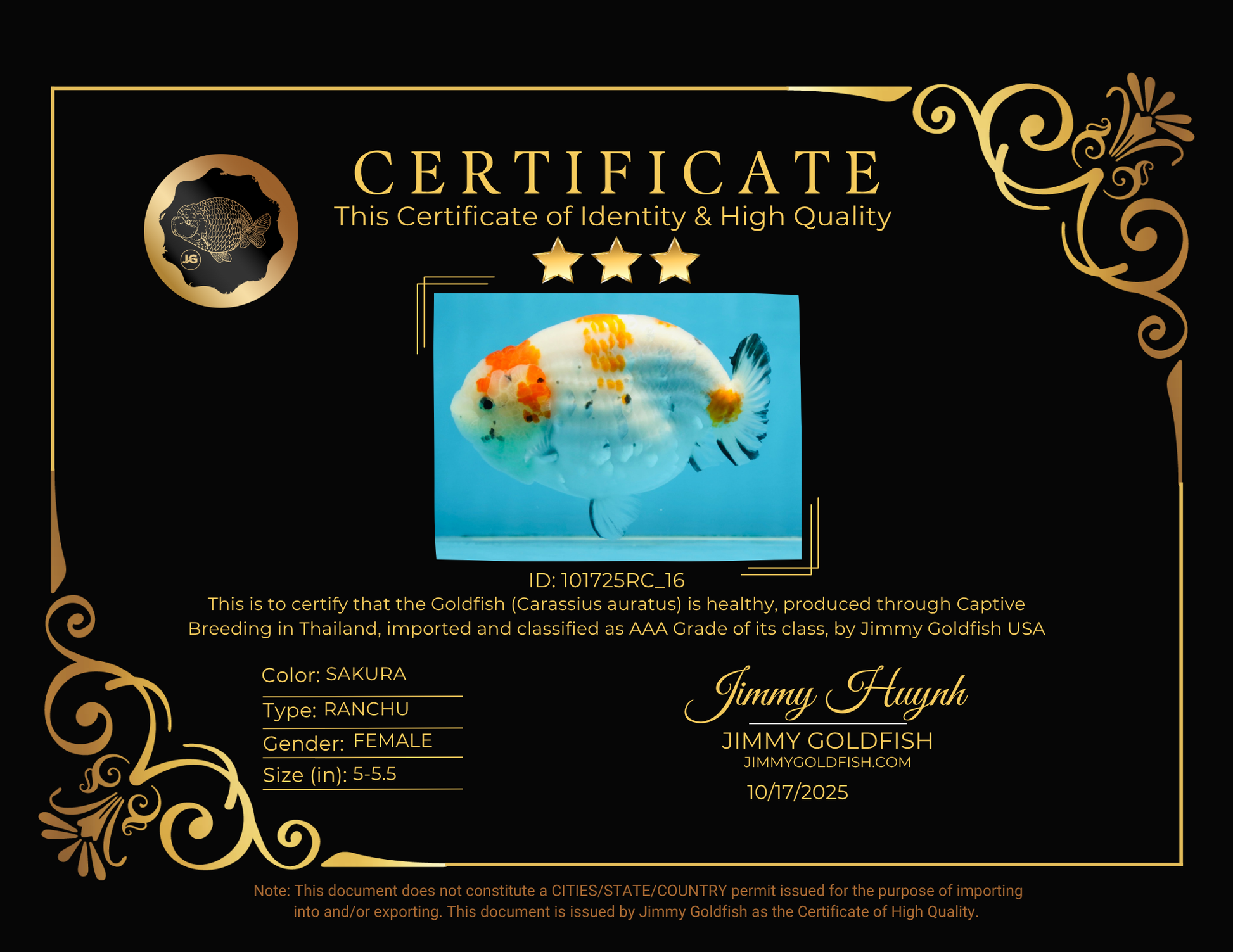 THICK BODY AAA Grade Chinese Kohaku Sakura Ranchu Female 5-5.5 inches #101725RC_16