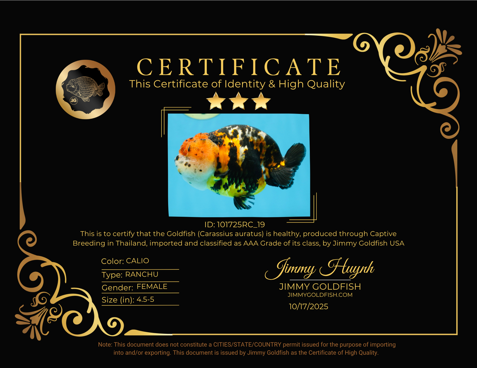 UNIQUE AAA Grade Chinese Red Head Ranchu Female 4.5-5 inches #101725RC_19