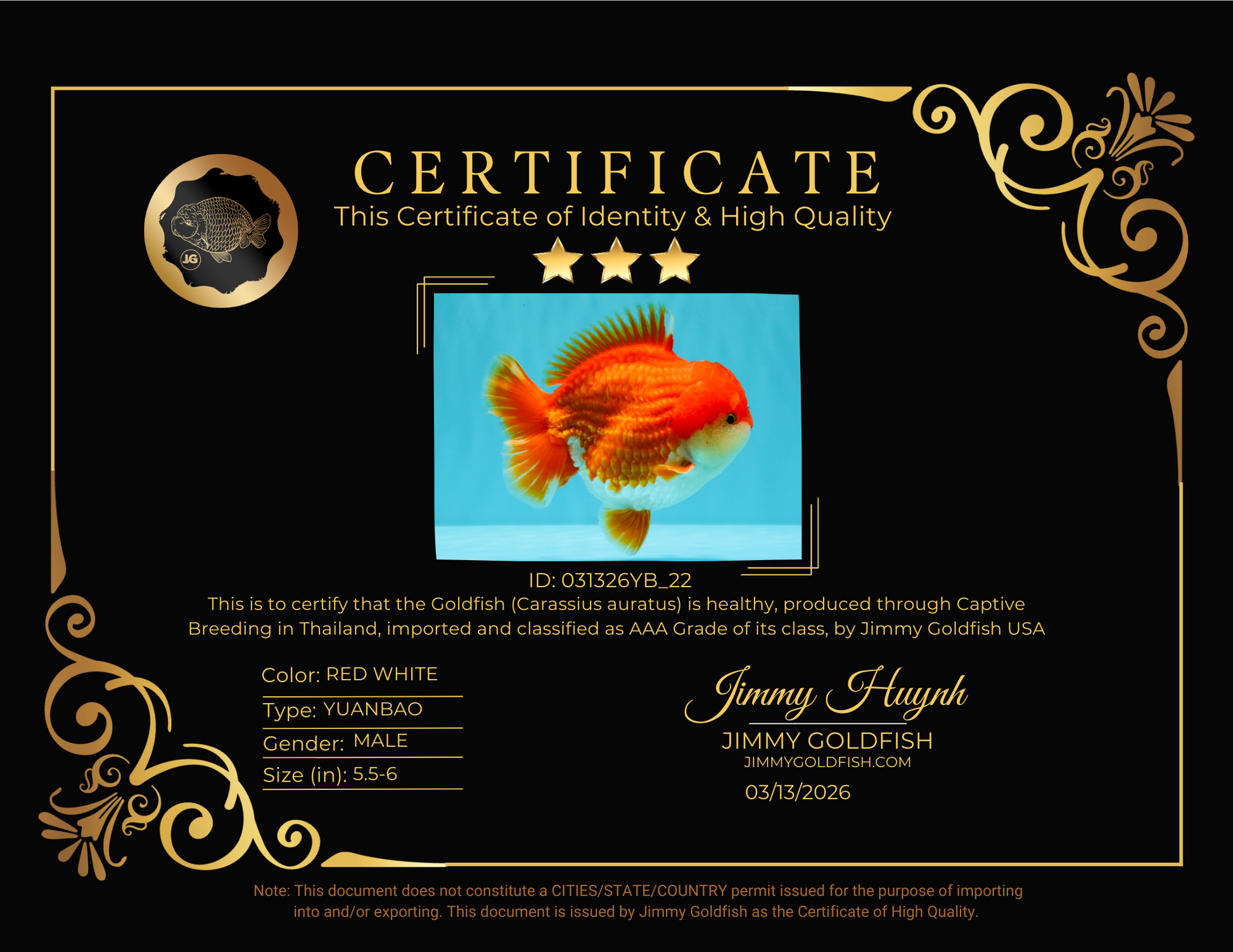 Health: Every fish has completed our strict quarantine procedure. Healthy and active condition. Disease-free guarantee.