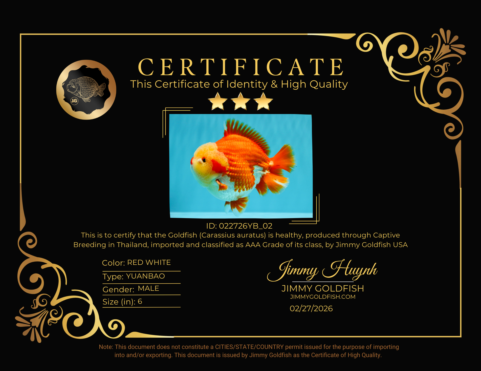 Health: Every fish has completed our strict quarantine procedure. Healthy and active condition. Disease-free guarantee.